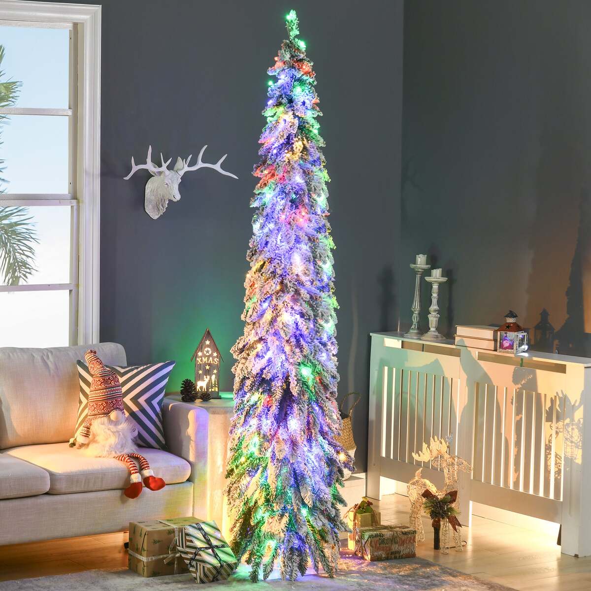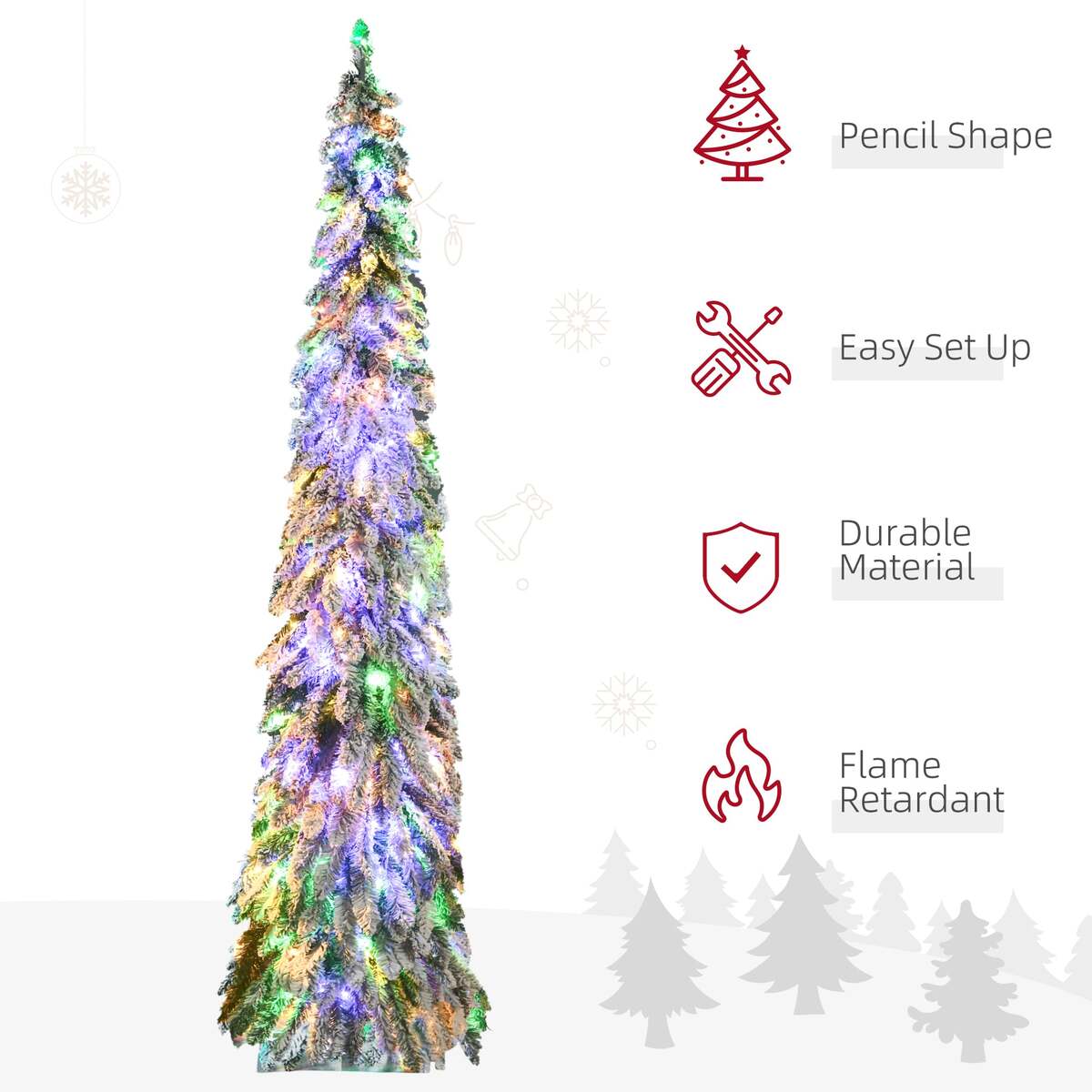 HOMCOM 7ft Prelit Flocked Pencil Christmas Tree LED Lights