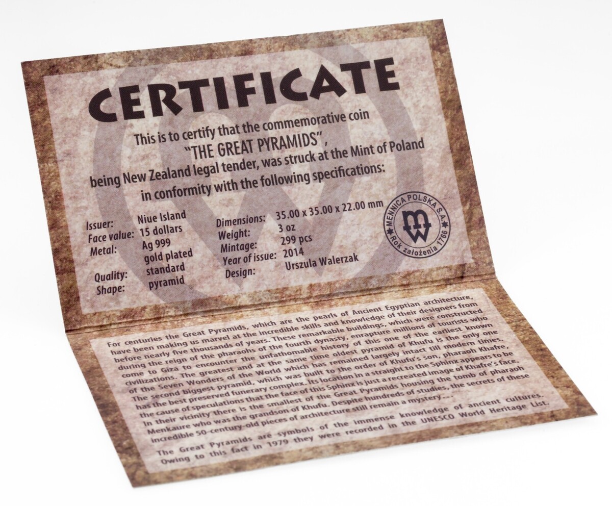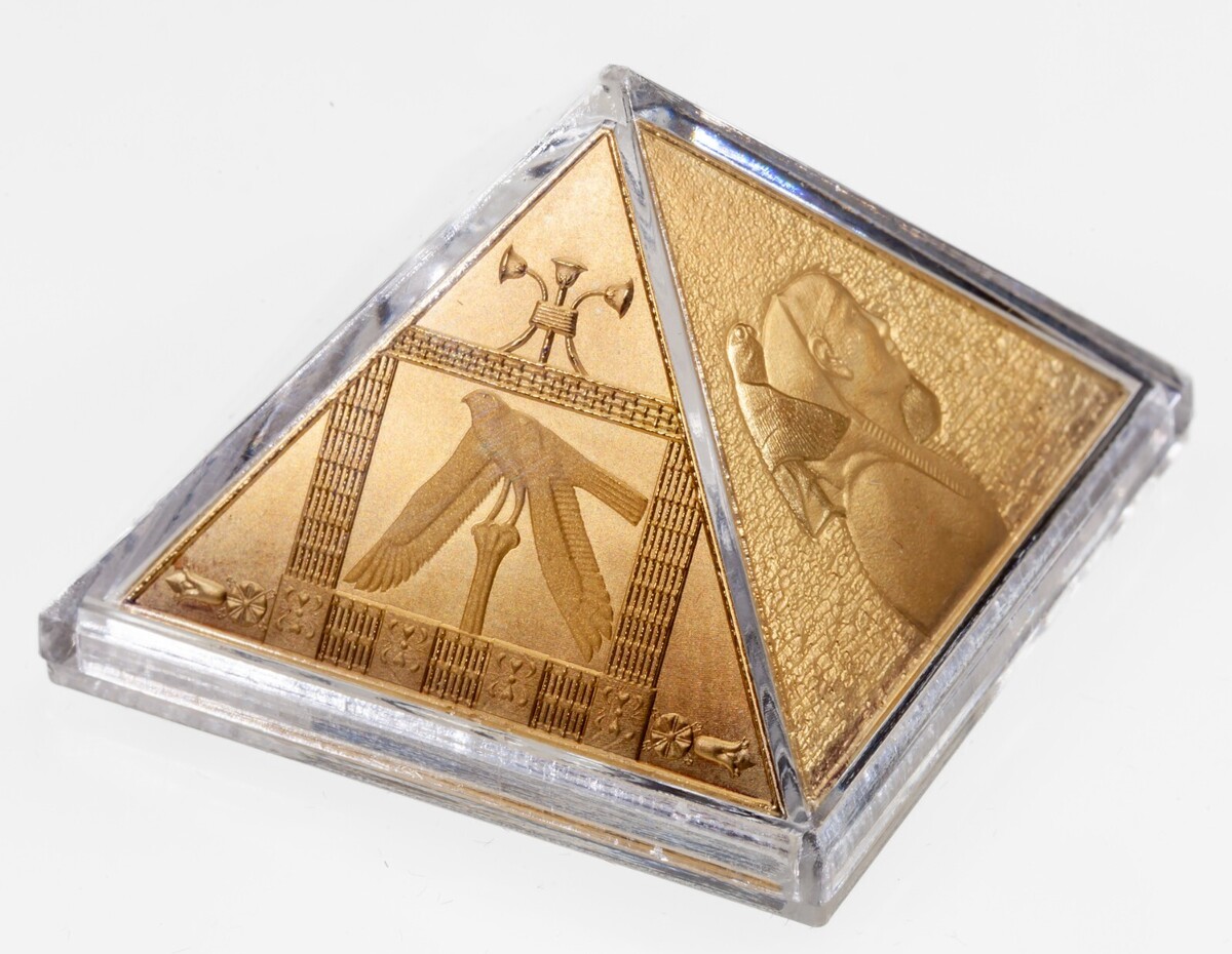 Set Includes 1 3oz. Silver, Gold Plated "The Great Pyramids" Pyramid-Shaped Proof Bar