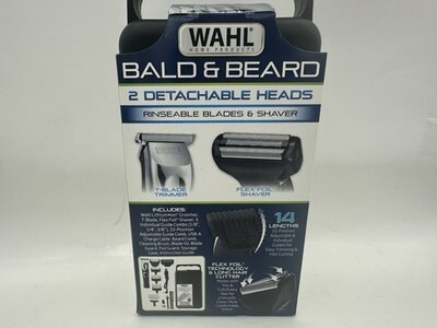 Wahl Bald Beard Rechargeable Balding System for men. Powerful full-size precision trimmer with standard cutting lengths, stubble to full or long cutting lengths, fade and touchups. Full size flex foil technology and long hair cutter, moves with you and cuts every hair for a smooth, close, more comfortable shave. Rinseable blades and shaver for easy clean up. Convenient USB charging . Wahl Lithium Ion technology provides 3 minute quick charge for 3 minute run time or 3 hour full charge for 3 hour run time.