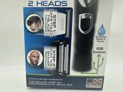 Wahl Bald Beard Rechargeable Lithium Ion Rinseable T-Blade Trimmer 2 Heads Men.