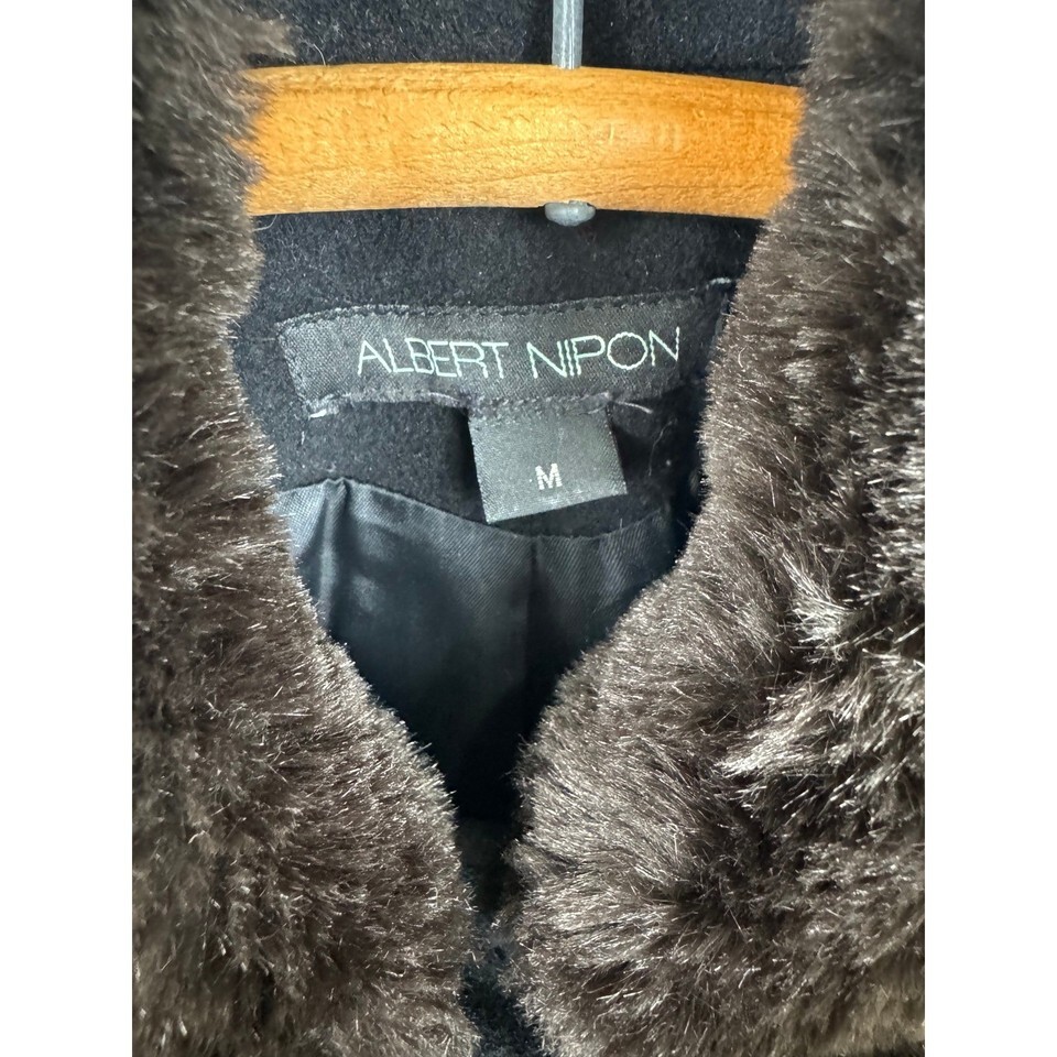 Keywords: Albert Nippon coat, black wool blend coat, womens coat size M, fur collar coat, elegant outerwear, button up coat, designer coat, winter coat, classic coat, sophisticated fashion, faux fur trim, womens M coat, premium coat, chic jacket