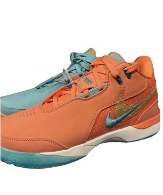The Nike Zoom LeBron NXXXT Gen AMPD "Blue/Mango" Men's Basketball Shoes Size 11 are a stylish and comfortable option for athletic activities. Featuring a lace-up closure and a rubber outsole, these shoes provide a secure fit and support for basketball games. The blue colorway with mango accents adds a unique and vibrant touch to the design, while the foam insole and fabric lining ensure a comfortable and breathable wear. With the signature Nike LeBron silhouette and brand, these shoes are sure to be a standout choice for any basketball player.