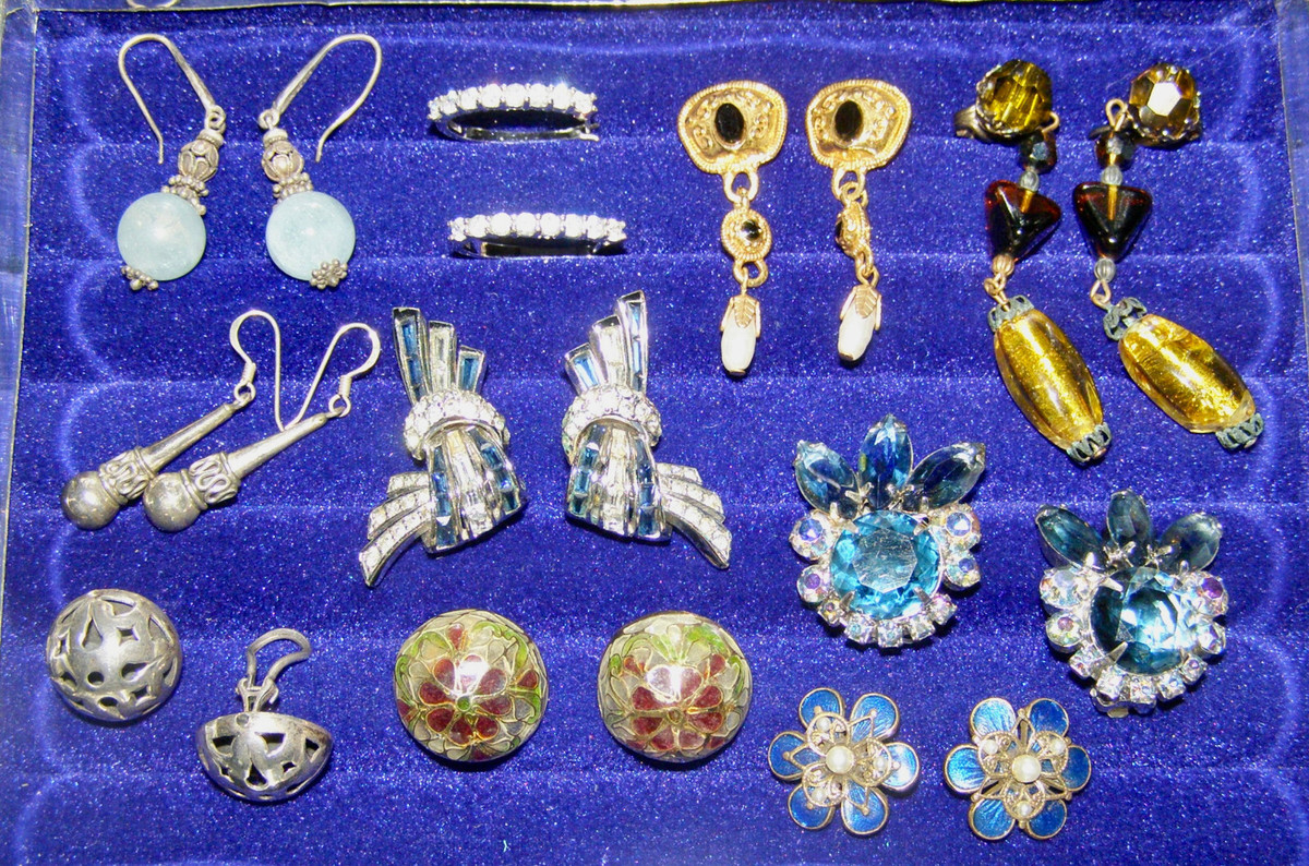 VINTAGE LOT OF 10 PAIRS OF DESIGNER + ARTISAN MADE EARRINGS- CLIP, PIERCED,SCREW