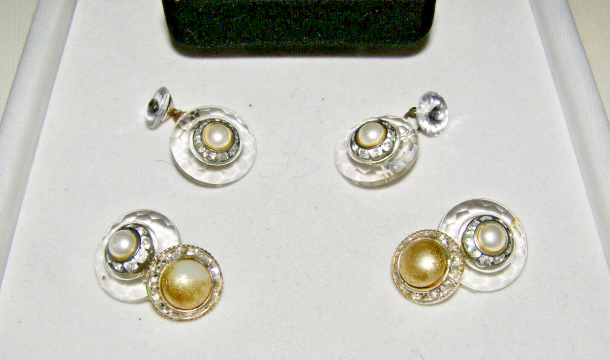 2 pairs CRYSTAL / ROCK CRYSTAL CUFF LINKS w/ RHINESTONES+PEARLS +