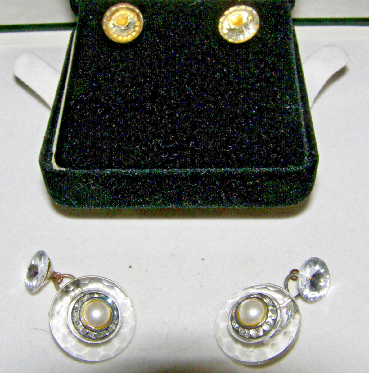 VINTAGE LOT OF 3 prs=2pr. CRYSTAL/ROCK CRYSTAL CUFF LINKS+ 1 pr.CRYSTAL EARRINGS