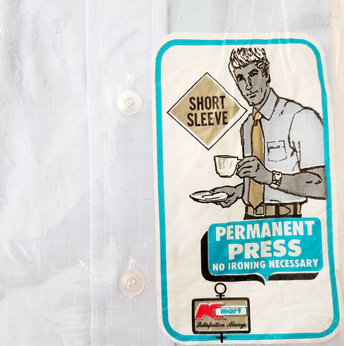 1970s Kmart Permanent Press Sealed Short Sleeve Blue Dress Shirt 14.5 Bags1