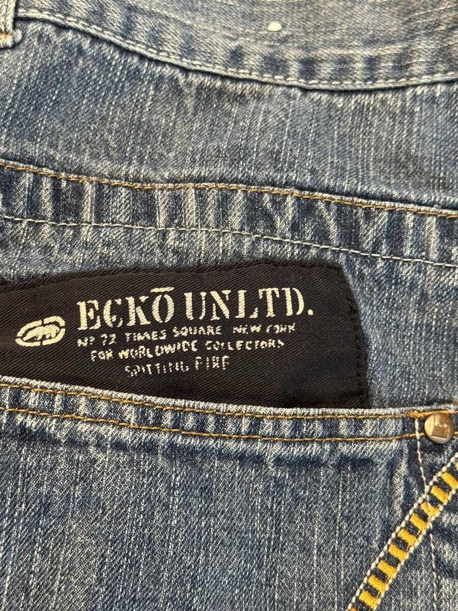 Ecko Unlimited Baggy Fit Jeans Men’s 32 Blue Denim Y2K Streetwear Yellow Stitch