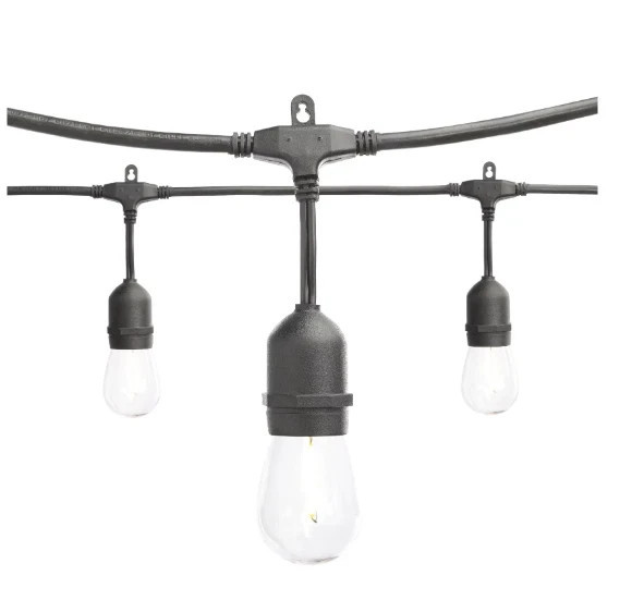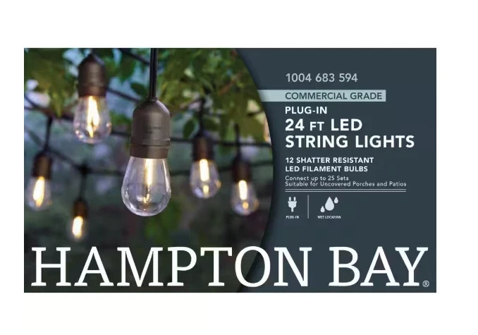 Hampton Bay 24ft 12-Light Edison Black String Lights Indoor/Outdoor LED Bulbs