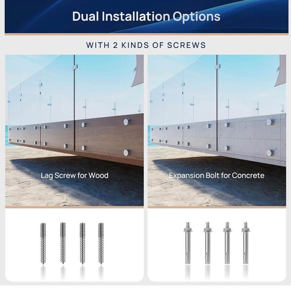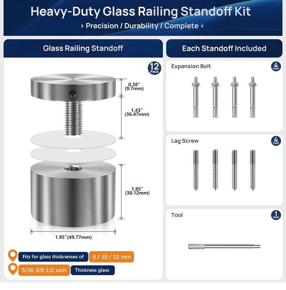 12 Pack Heavy Duty Glass Railing Standoff Hardware for Balcony Stair Balustrade