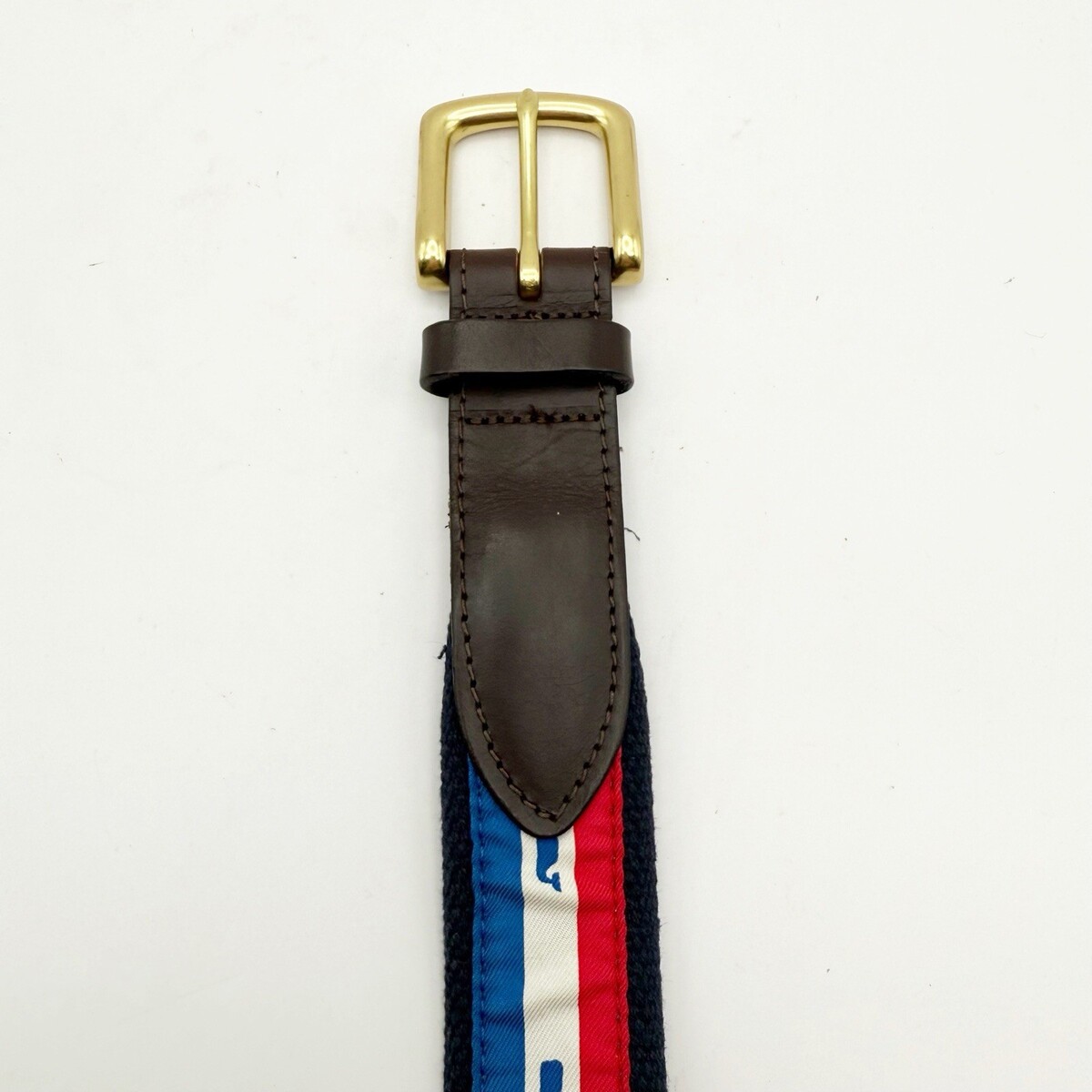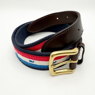 Vineyard Vines Red White & Blue USA Stripe Whale Logo Canvas Club Belt Sz 36
