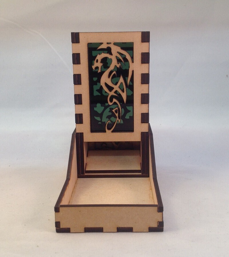 Dragon v4 Dice Tower and Tray Green Acrylic Window COMPACT DESIGN Laser Cut MDF