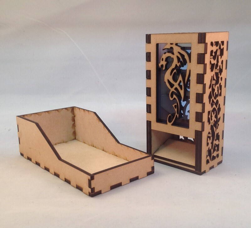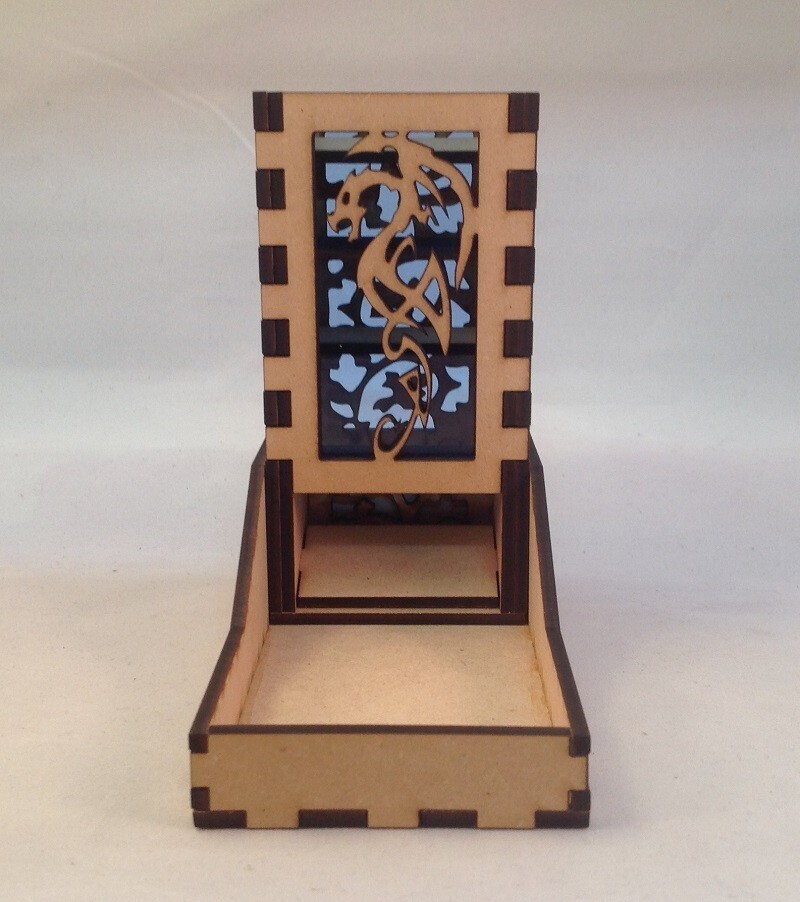 Dragon v4 Dice Tower & Tray Medium Blue Acrylic Window COMPACT DESIGN Laser Cut
