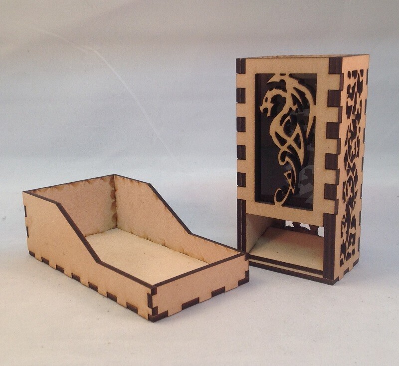 Dragon v4 Dice Tower & Tray Smoke Acrylic Window COMPACT DESIGN Laser Cut