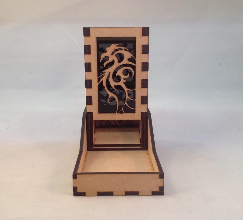 Dragon v6 Dice Tower and Tray Smoke Acrylic Window COMPACT DESIGN Laser Cut MDF