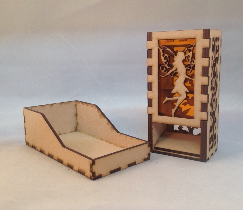 Fairy Dice Tower and Tray Amber Acrylic Window COMPACT DESIGN Laser Cut MDF