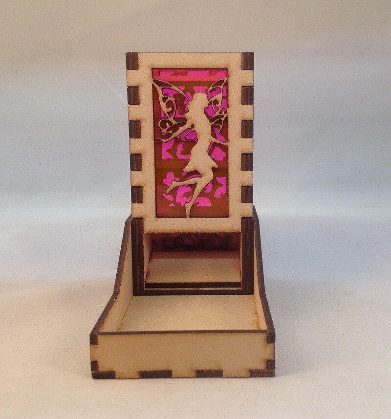Fairy Dice Tower and Tray Neon Pink Acrylic Window COMPACT DESIGN Laser Cut MDF