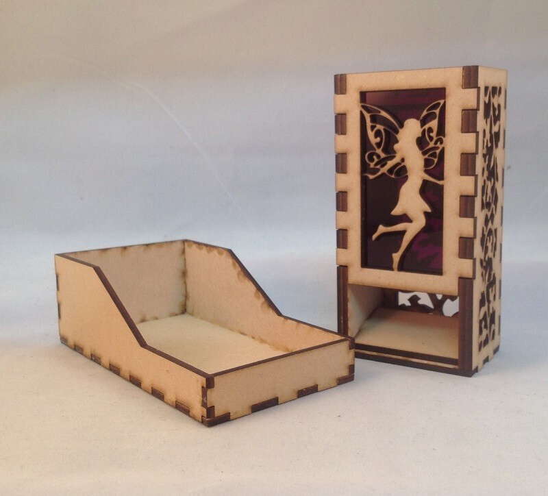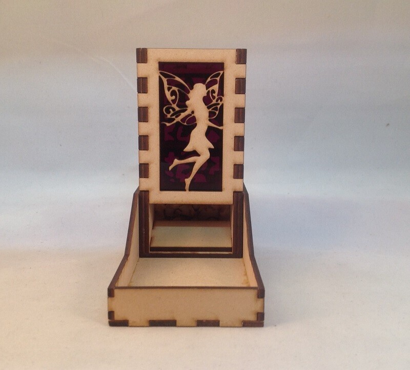Fairy Dice Tower and Tray Purple Acrylic Window COMPACT DESIGN Laser Cut MDF