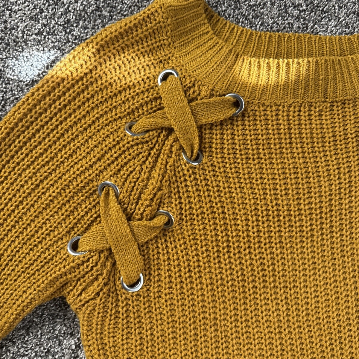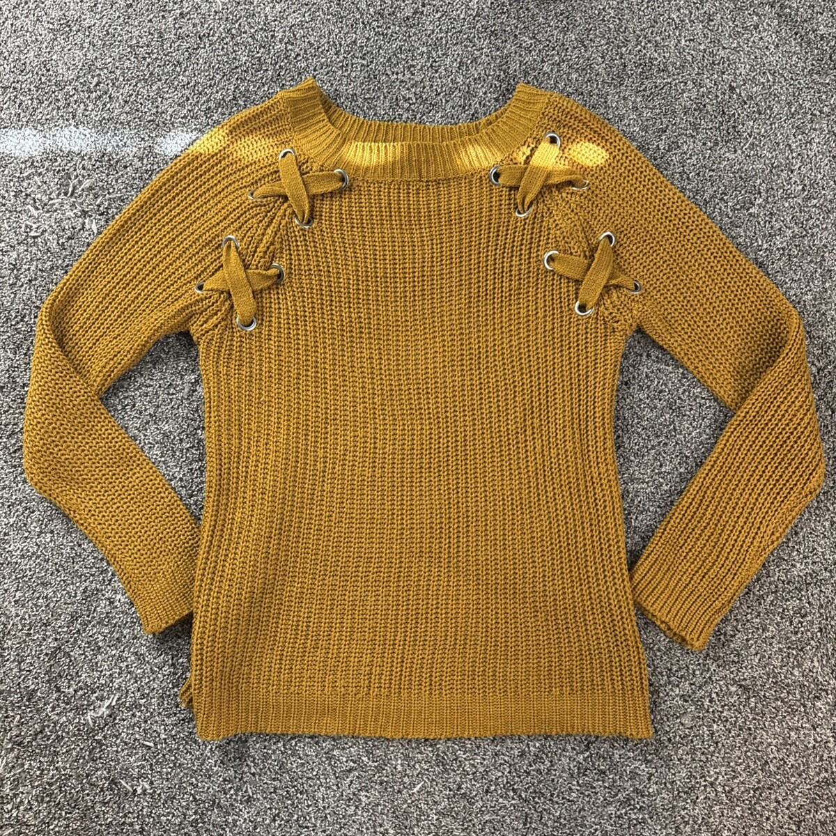 Love Juniors Knit Cross Lace Design Mustard Yellow (L) Large Cotton Blend. Condition is Pre-owned - Good. Shipped with USPS Ground Advantage.
