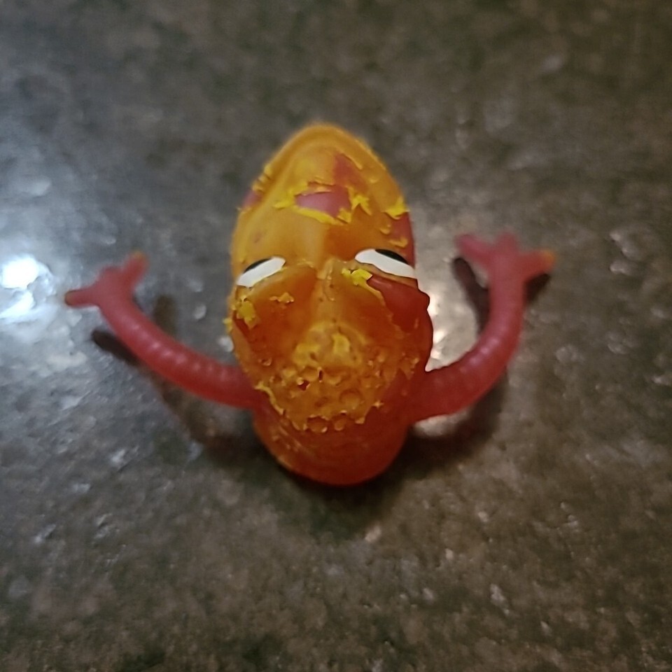 Here is a vintage, retro 1980's or 1990's vending machine toy. This is the monster finger puppet or also called Jigglers or Uglies finger puppet. This one is red with yellow paint on it. The paint is starting to peel off. But a cool vintage vending machine toy!