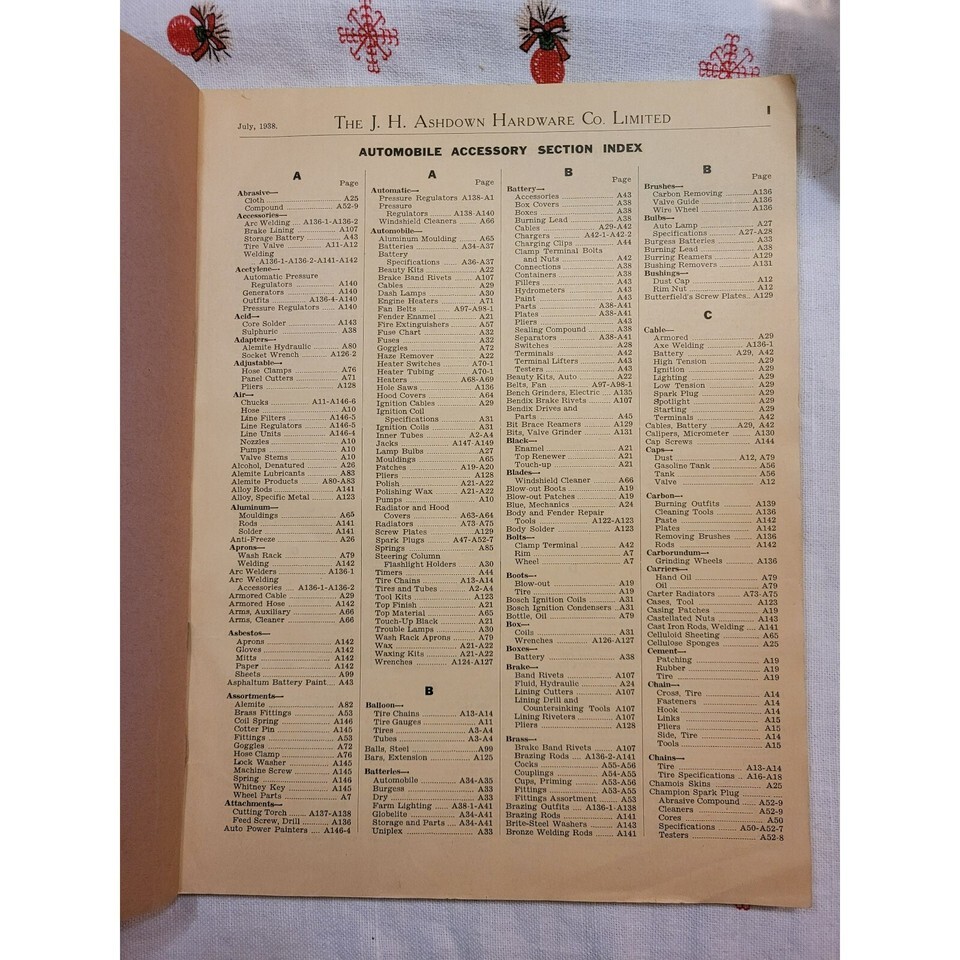 Vintage July 1938 Automobile Accessories Catalog Catalogue J H Ashdown Hardware