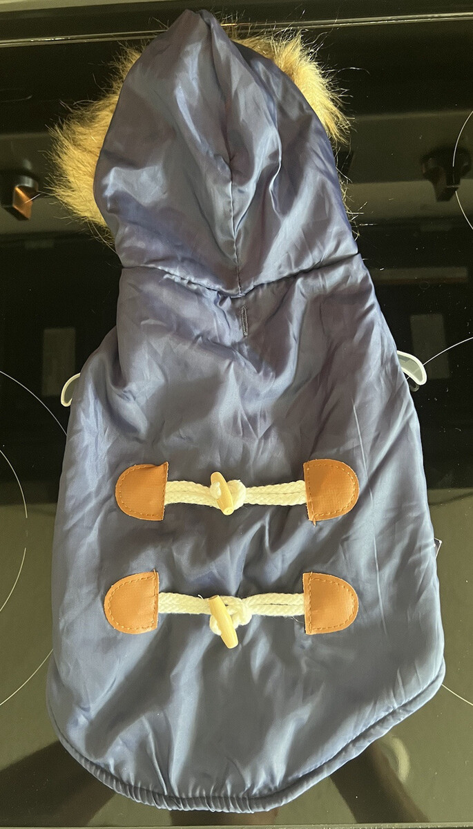 Pet Jacket Dog Coat Small Quilted Puffy Coat Blue Faux Fur Lined Hood