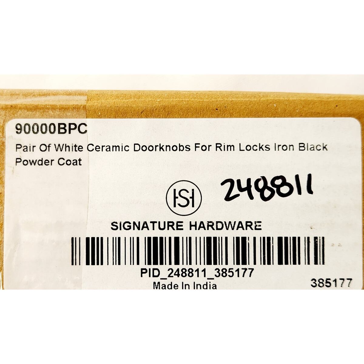 Signature Hardware 248811 Pair of White Ceramic Doorknobs - Black Powder Coat