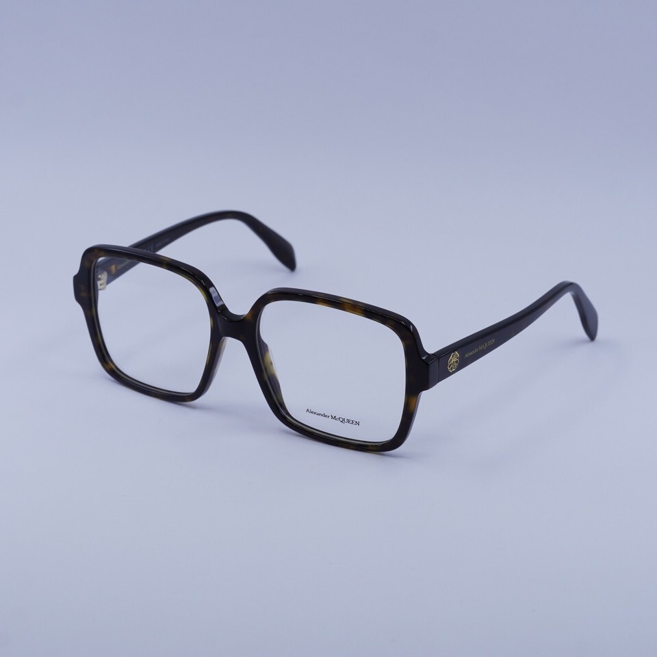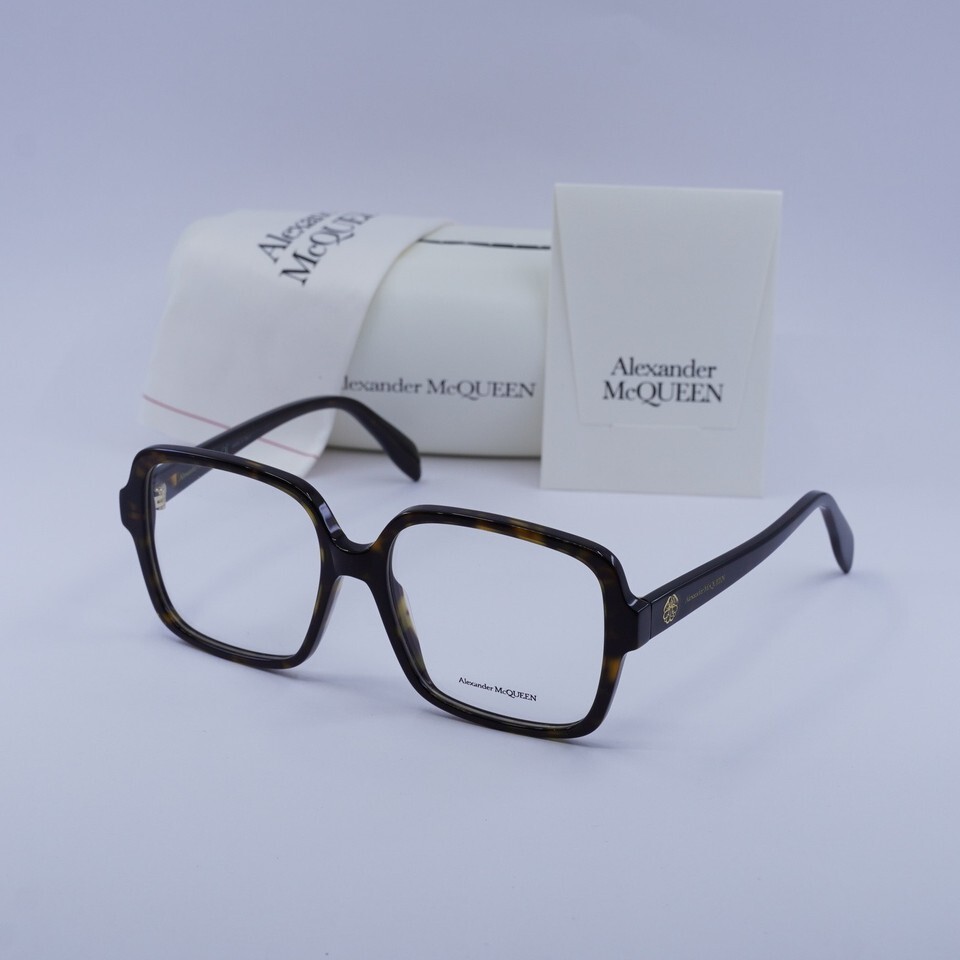 Alexander McQueen AM0286O 002 Dark Havana 55mm Eyeglasses New Authentic