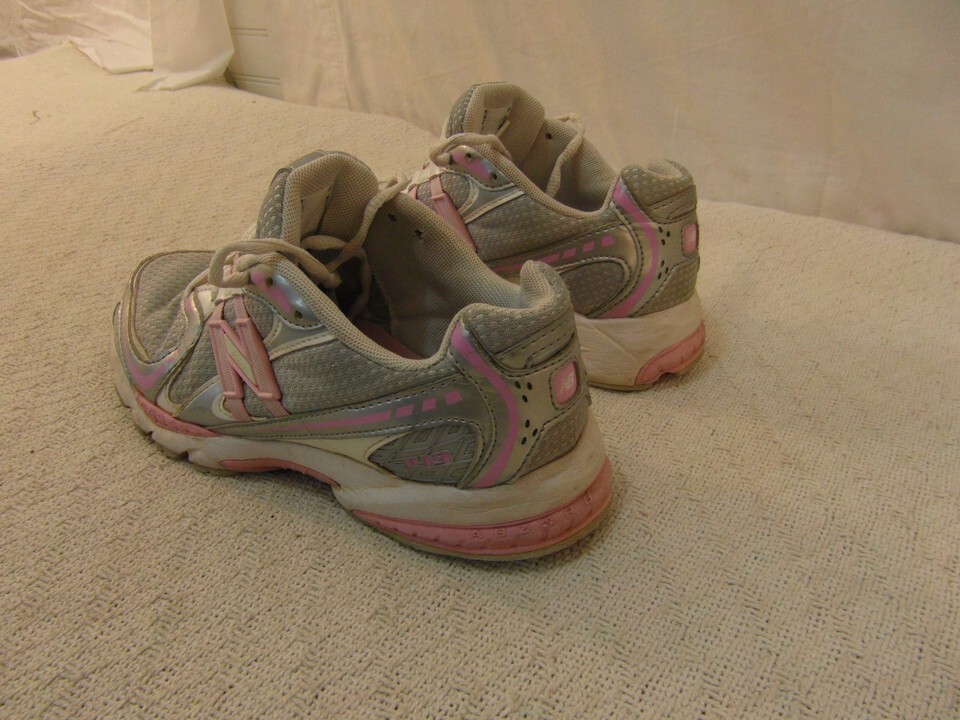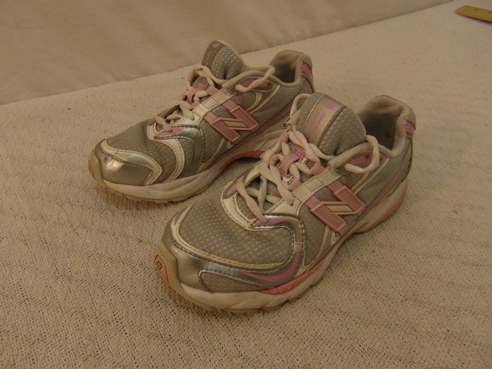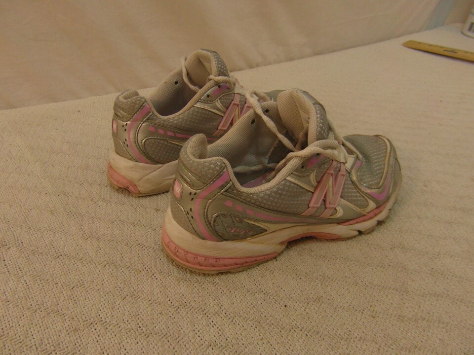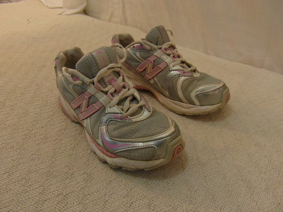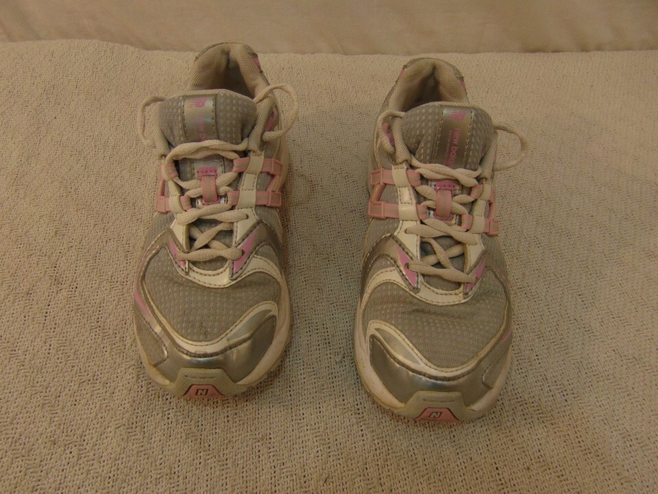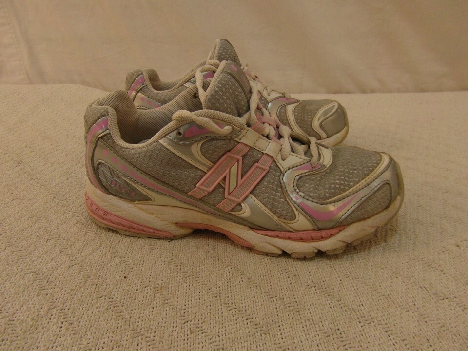 YOUTH GIRLS NEW BALANCE 749 PINK WHITE SILVER 4 ATHLETIC LACE UP RUNNING SHOES