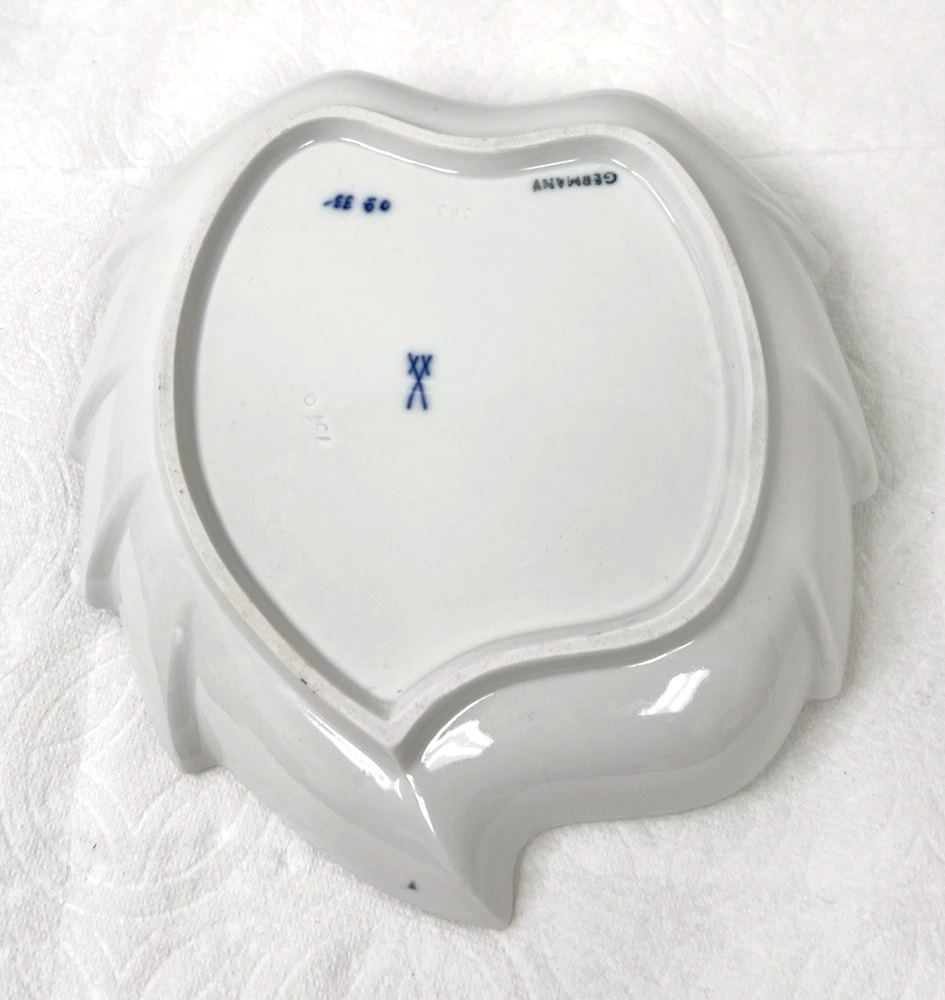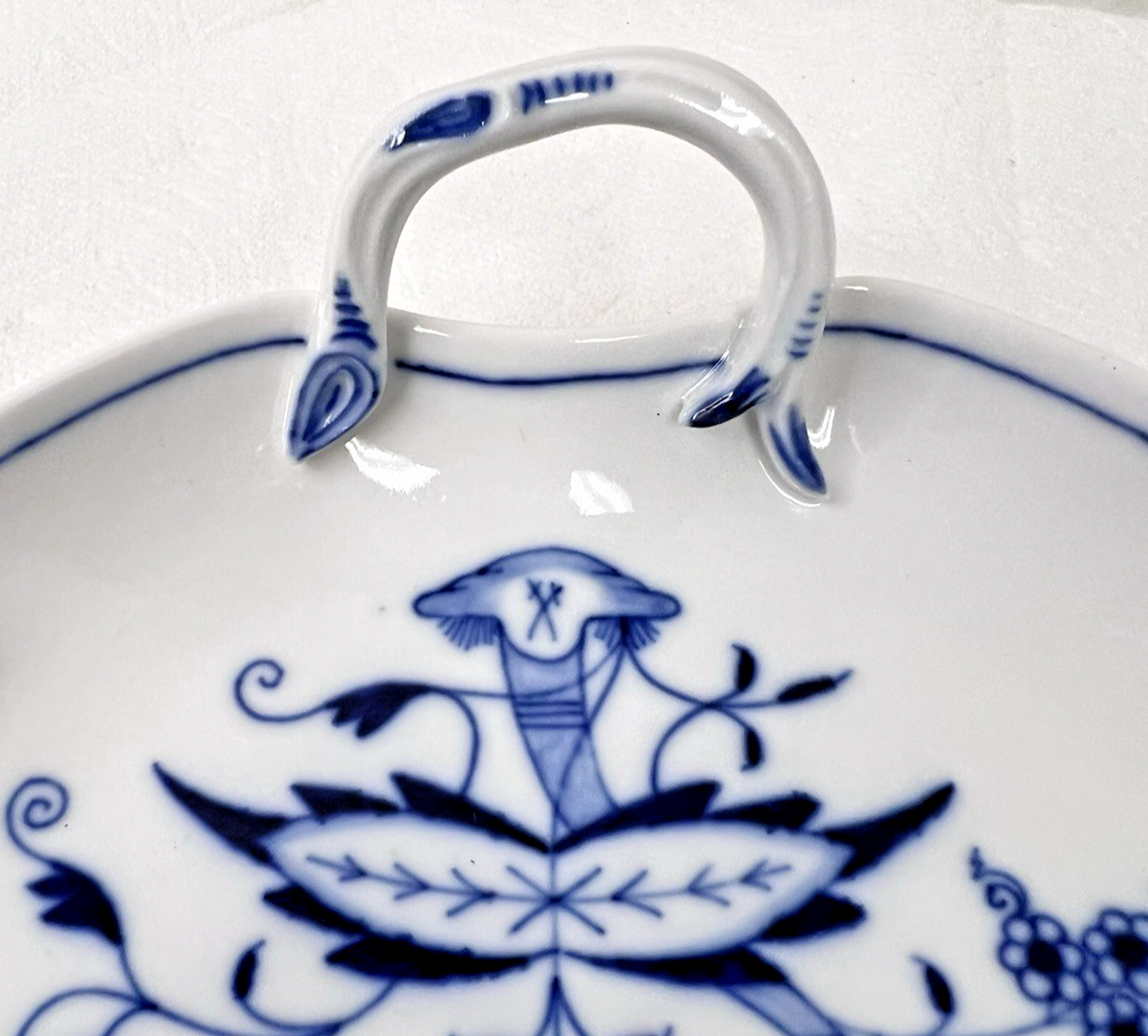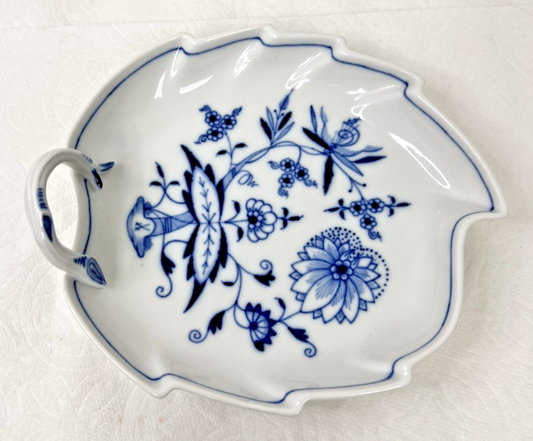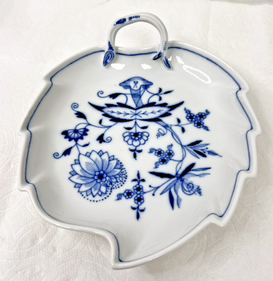 OLD Blue Onion Sword Backstamp by MEISSEN GERMANY Leaf Plate w Attached Handle