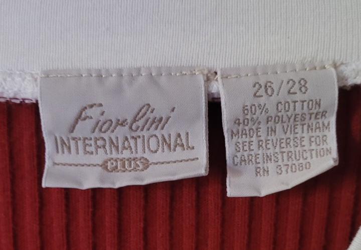 Women's Fiorlini International Shirt Plus Size 26/28 Red White Ribbed Layer Look