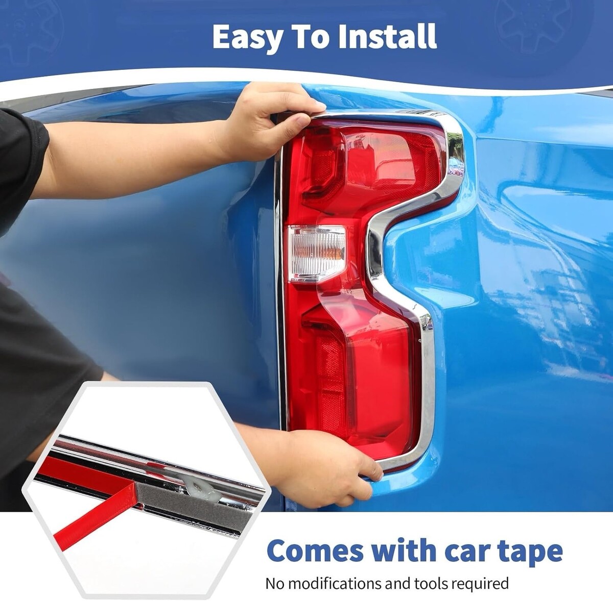 Silverado chrome tail light trim, 2019 2020 2021 2022 2023 2024 Chevy Silverado accessories, tail lamp frame cover, Silverado exterior chrome, RT-TCZ