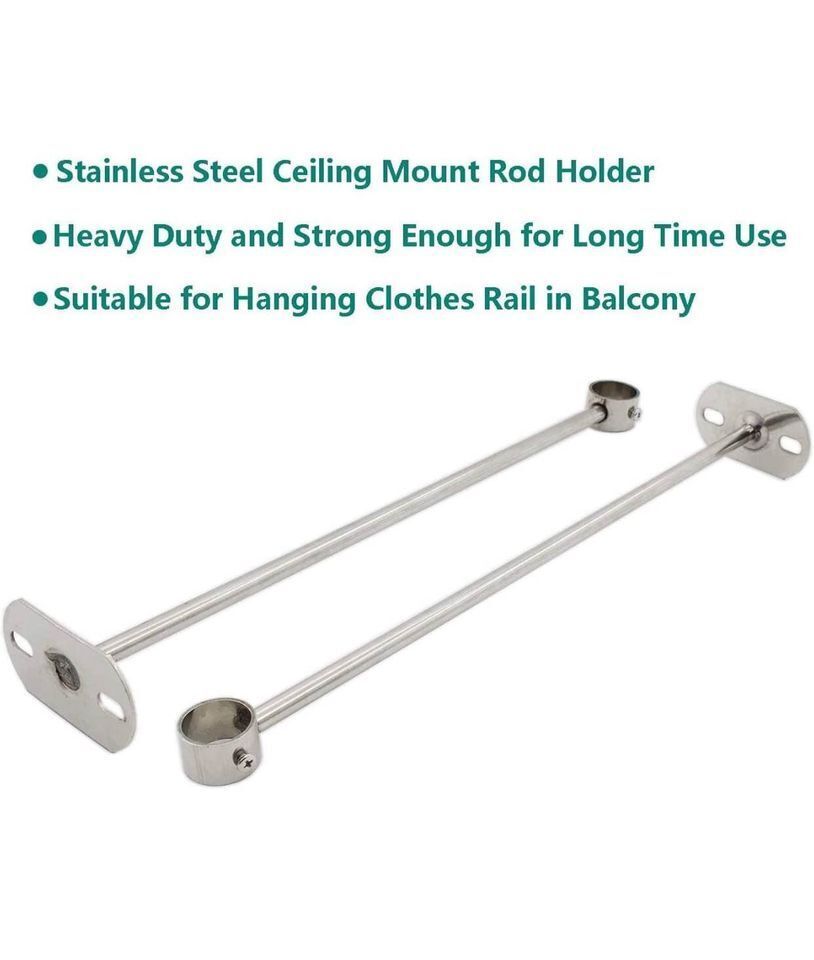 2 Pack Ceiling Mount Bracket, Stainless Steel Wardrobe Pipe Rod Holder 1” x 20”