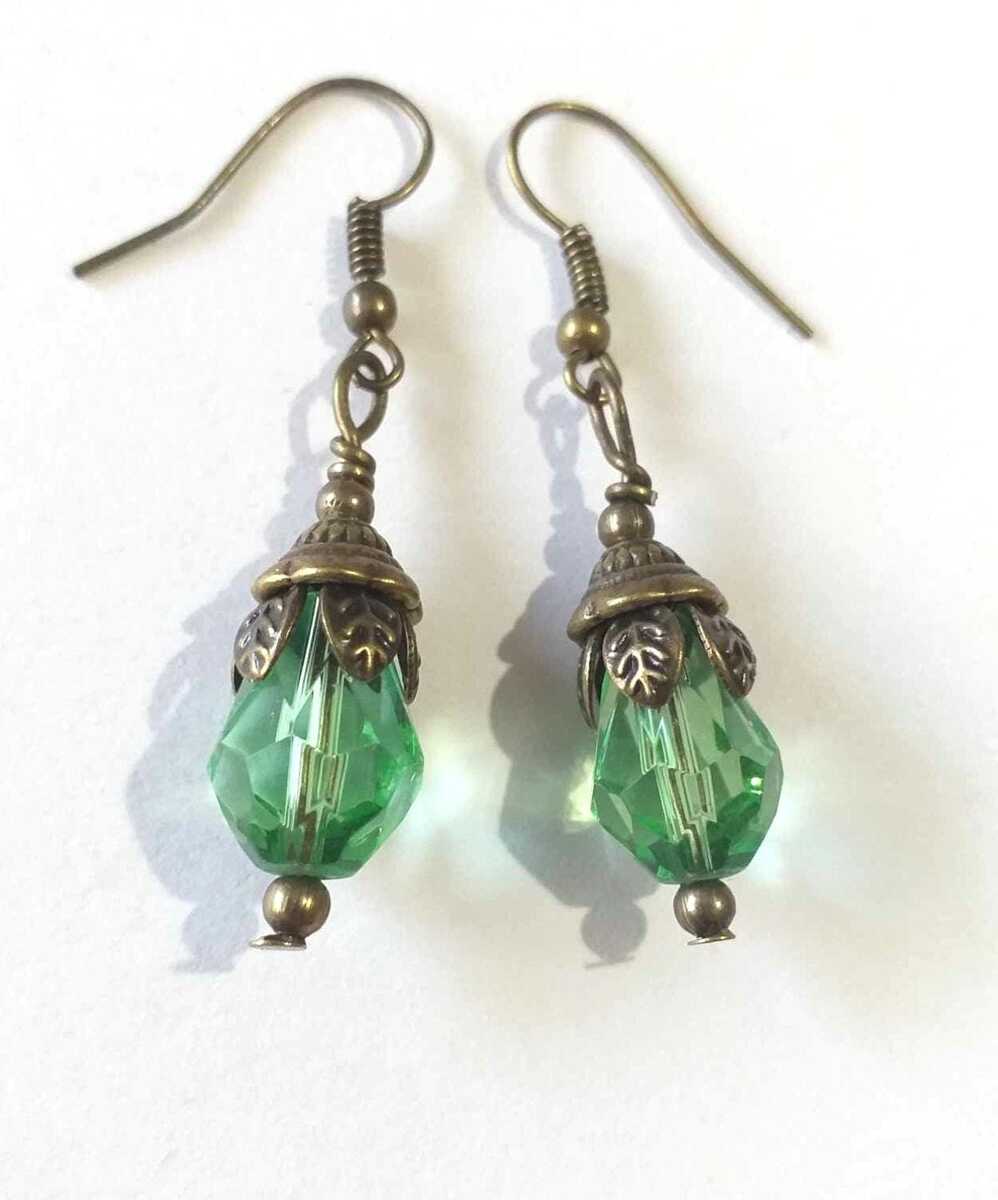 Emerald Green Teardrop Earrings: Victorian Bronze Boho Jewelry