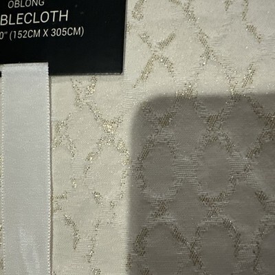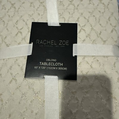 RACHEL ZOE Tablecloth Ivory/Gold Shimmer Oblong 60"x 120"Seats 10-12 Pp BNWT