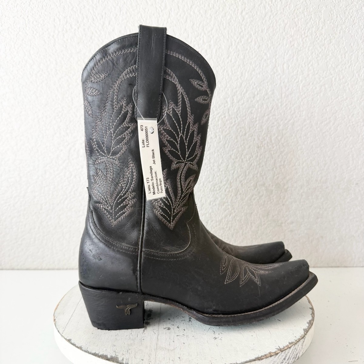 Lane SANDAGA Midi Womens Cowboy Boots 7.5 Cowgirl Western Black Mid Calf Boots