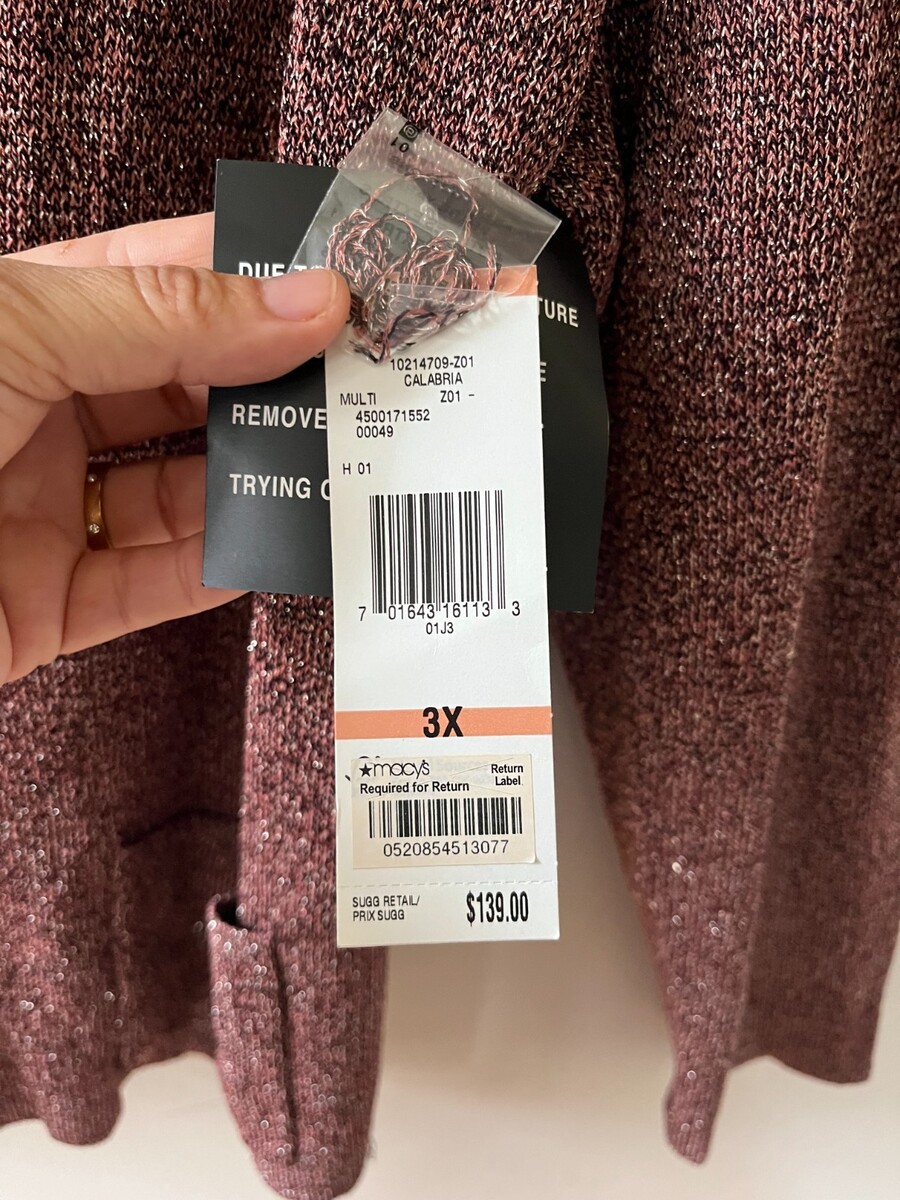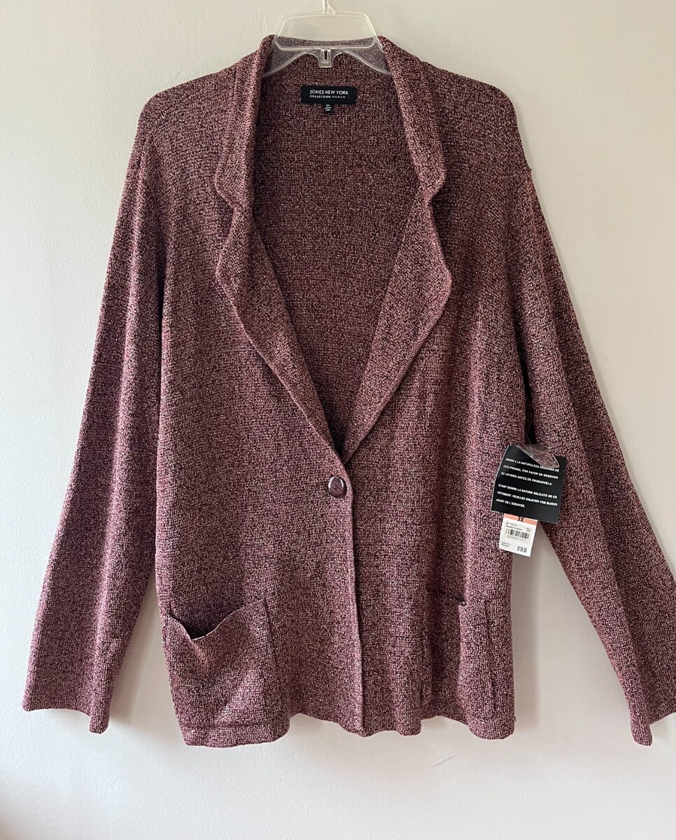 Jones New York Sz 3X Stretch One Button Front Cardigan Sweater Jacket Shimmery