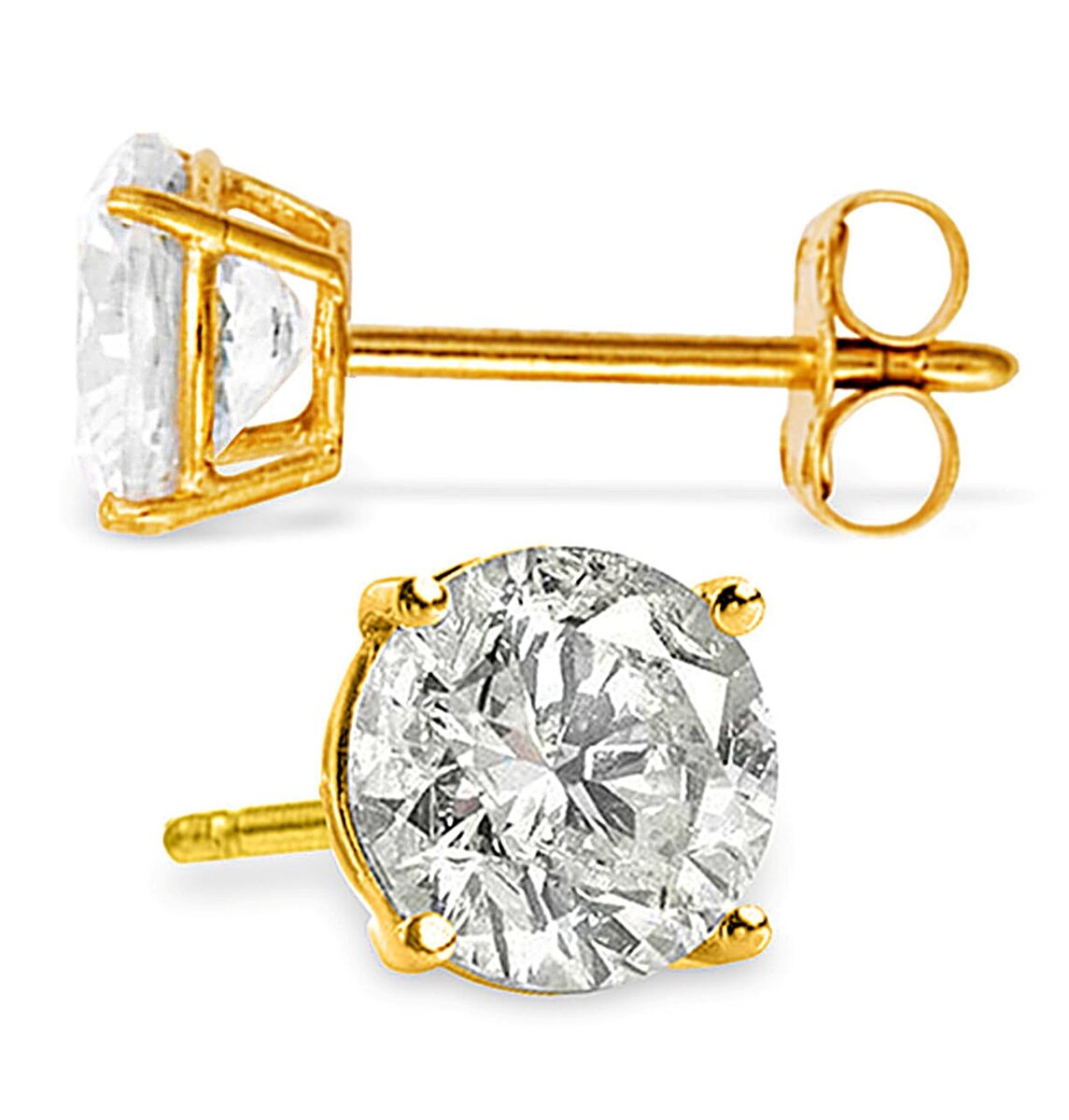 Stunning 1 Carat (CTW) Natural Round Brilliant Diamond 14k Solid Yellow Gold Stud Earrings H-I Color, SI1-SI2 Clarity - Galaxy Gold Hand crafted Fine Jewelry with Solid Gold and Genuine Gemstone. Comes in Black Velvet Gift Box with Gold Trim, encased in a white box. Item comes with Jewelry Tag and is Proudly Made in USA. Gift Notes are also available.