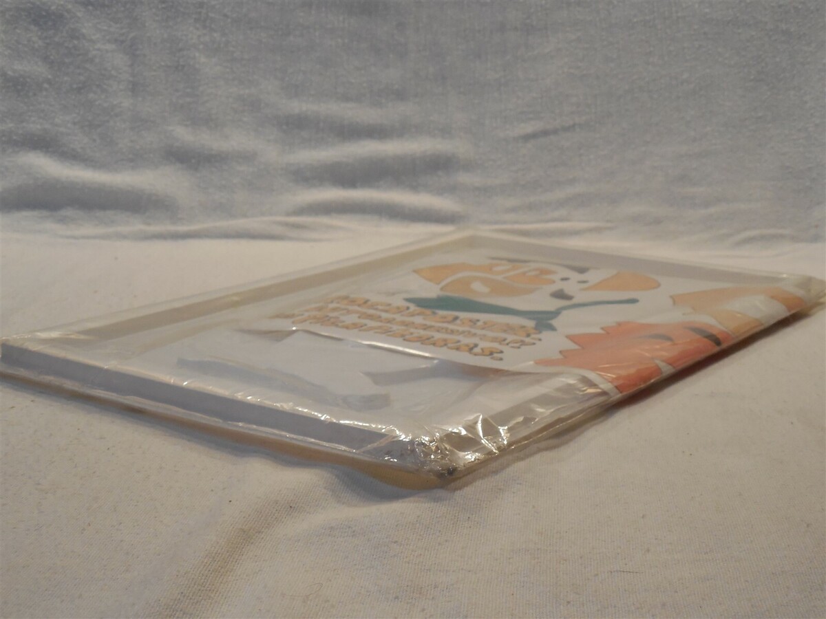 This is a Fred Flintstone make it yourself plaque in package from Mexico. There is a thin plastic plaque which has a raised Fred in the center and frame like edges. There is a sheet which has cutout self-adhesive pieces to complete the picture. The plaque measures approximately 11" x 16".