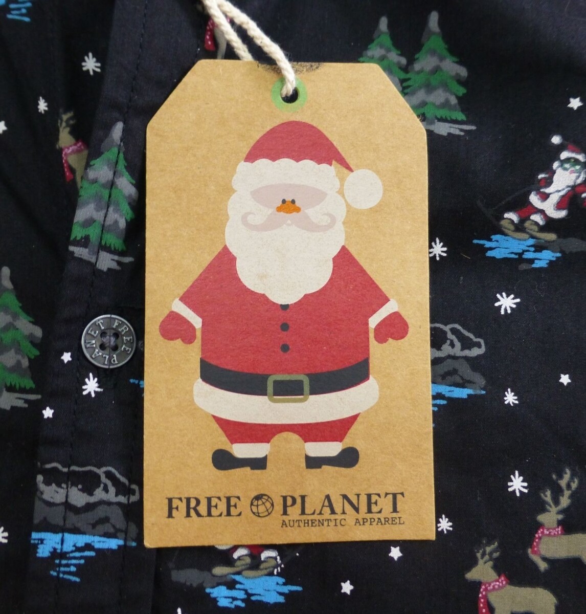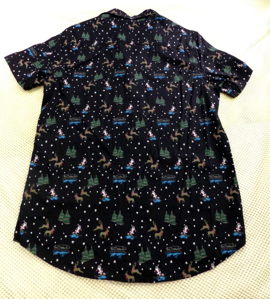 NWT Free Planet Mens All Over Christmas Button-Up Shirt Black Reindeer & Santa M
