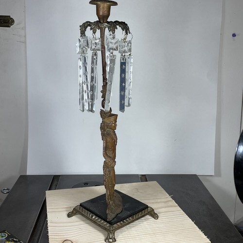 cornelius co candle holder antique brass w/ Hanging Crystals.