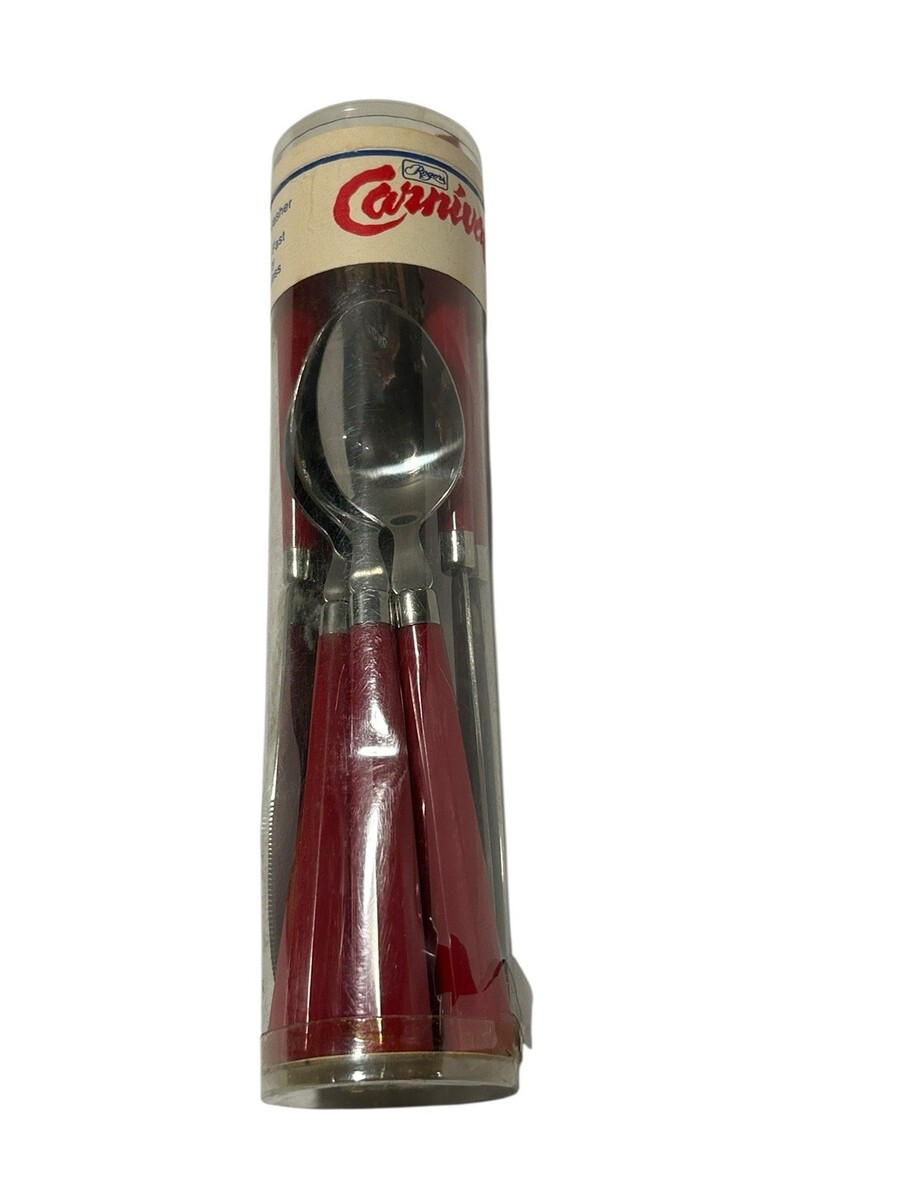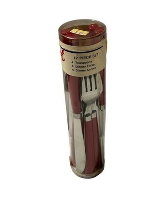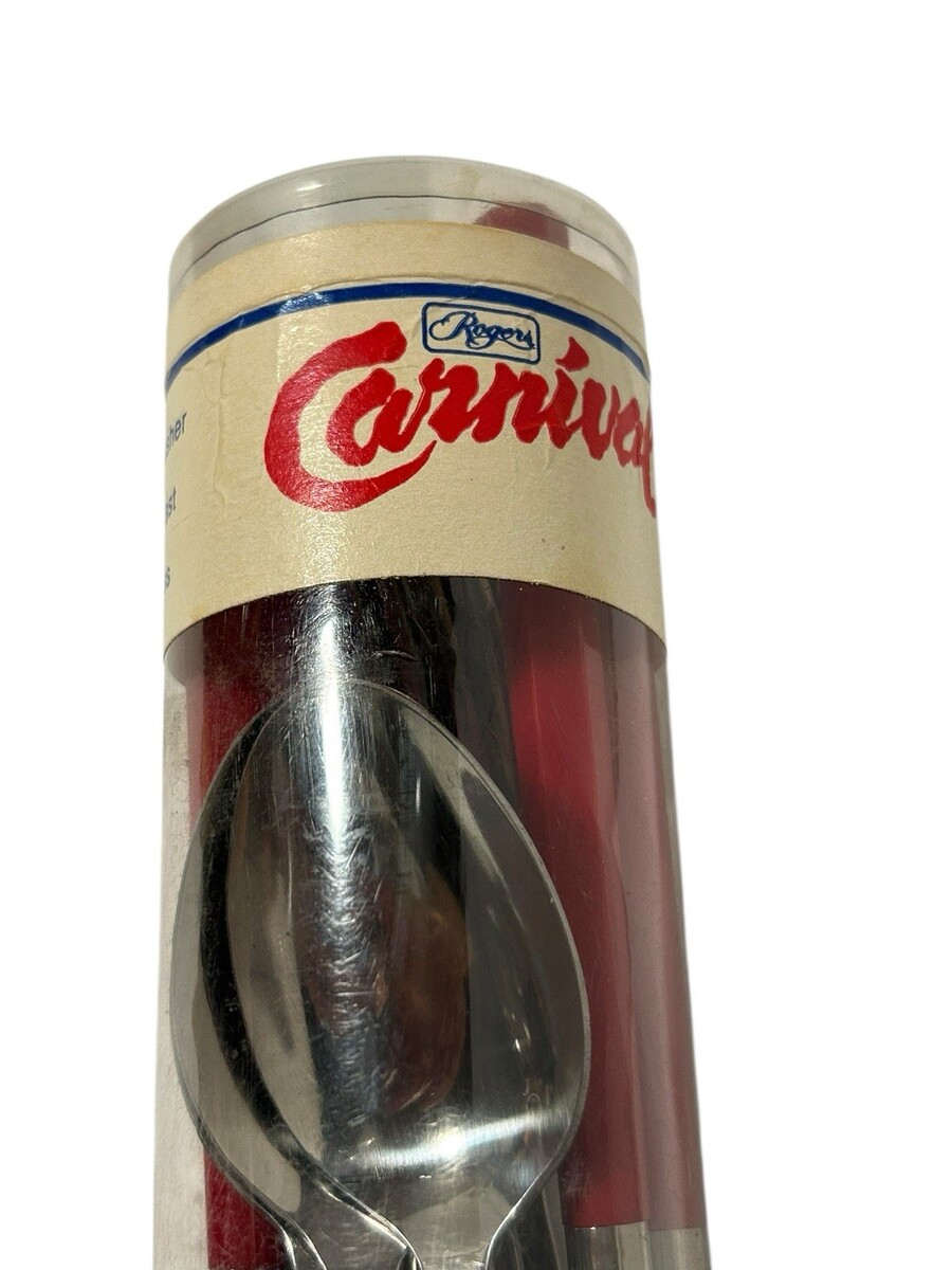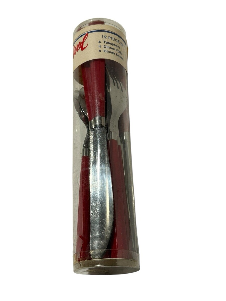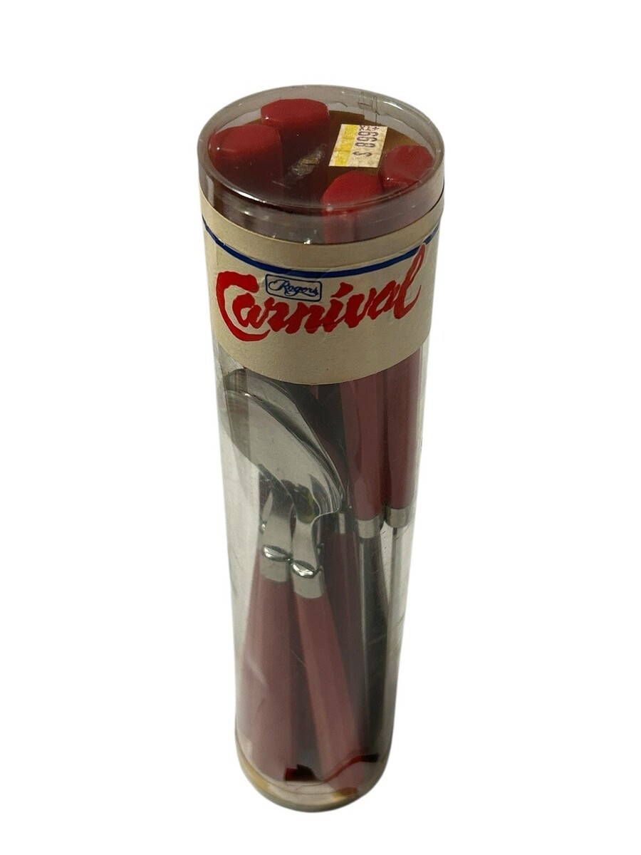 ROGERS CARNIVAL Red 12 Piece Flatware (4) Forks, (4) Knives (4)Teaspoons Tableware Unopened