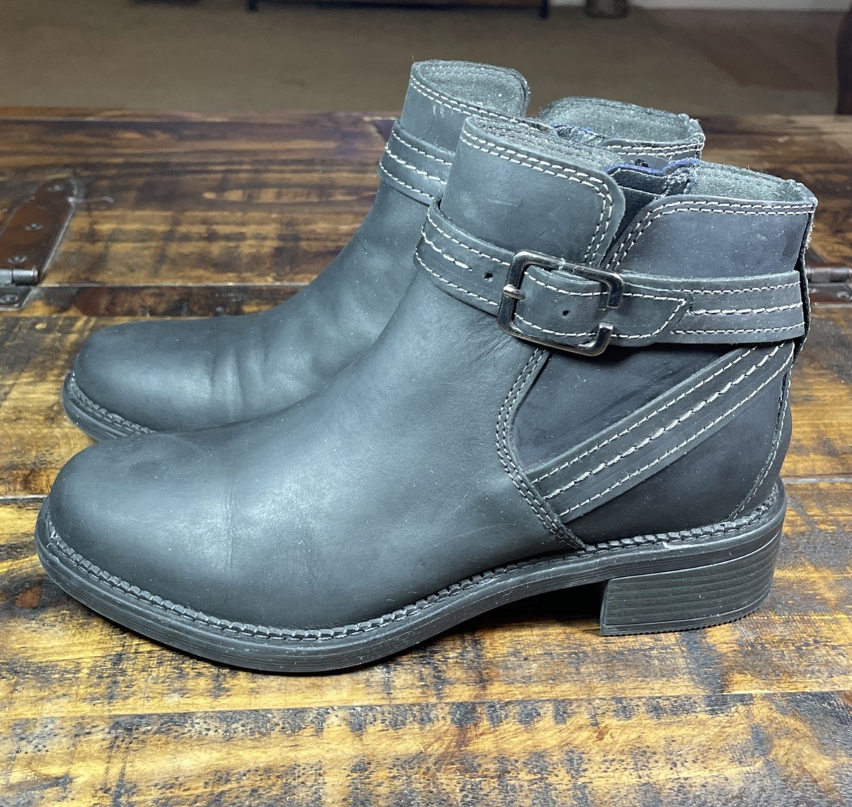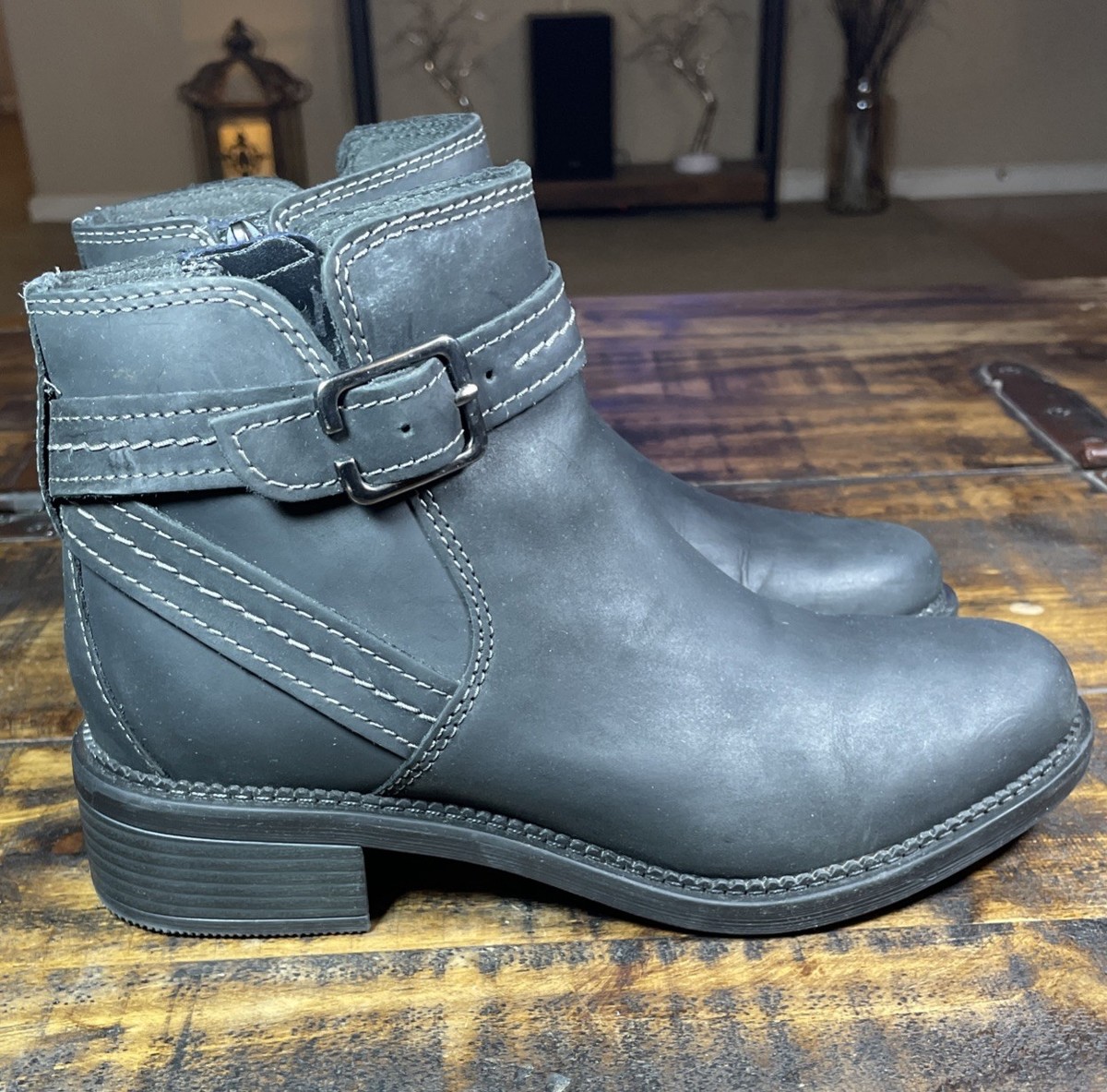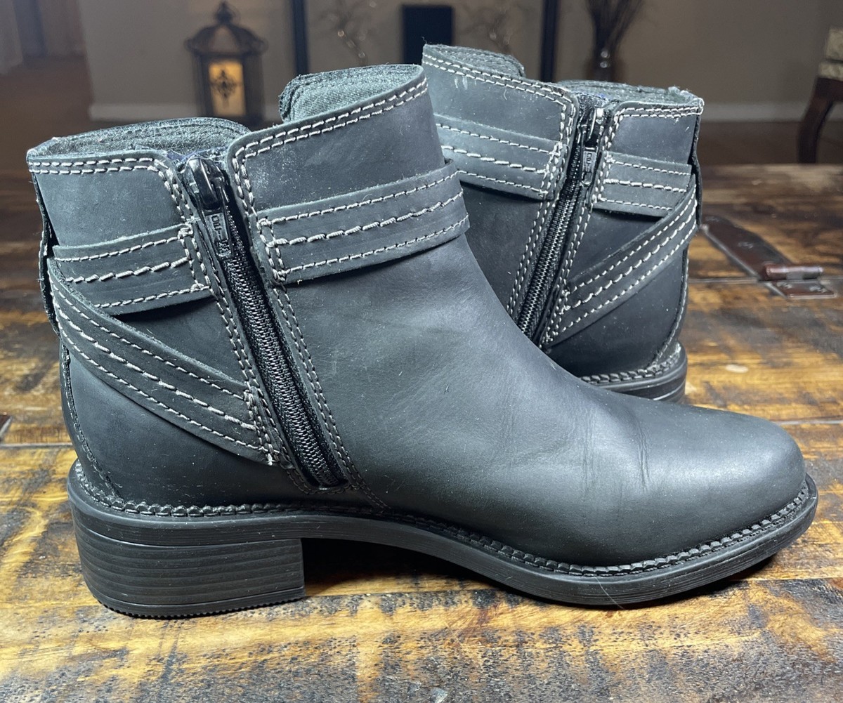 Leather Ankle Boots Buckle Black Womens 7M CLARKS Collection