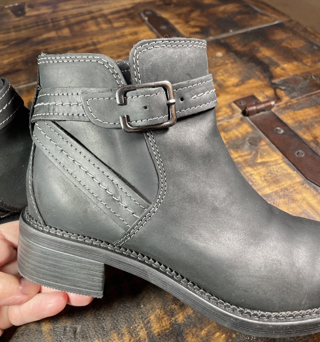 Leather Ankle Boots Buckle Black Womens 7M and similar items