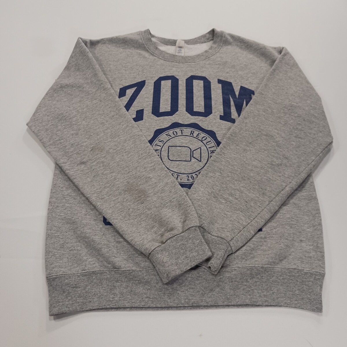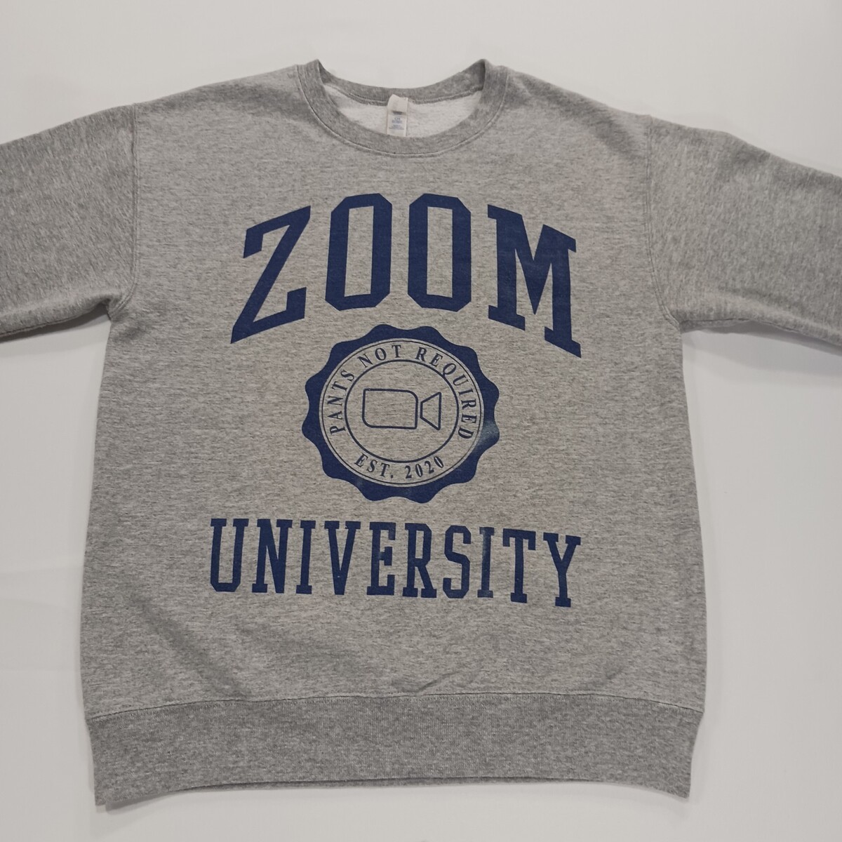 Jerzees Zoom University Pants Not Required Grey Blue Crew Neck Sweatshirt Men S