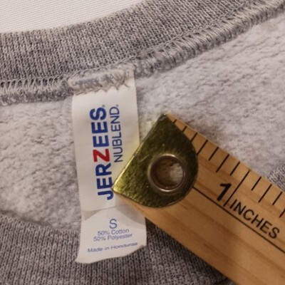 The Jerzees Zoom University Pants not required grey blue crew neck sweatshirt for men in size S is a comfortable and stylish activewear piece perfect for casual wear or lounging. Made from soft cotton material, this pullover sweatshirt features a solid gray color with a crew neck neckline and a relaxed fit. The University theme adds a fun and sporty touch to the overall look, making it a versatile addition to any man's wardrobe.