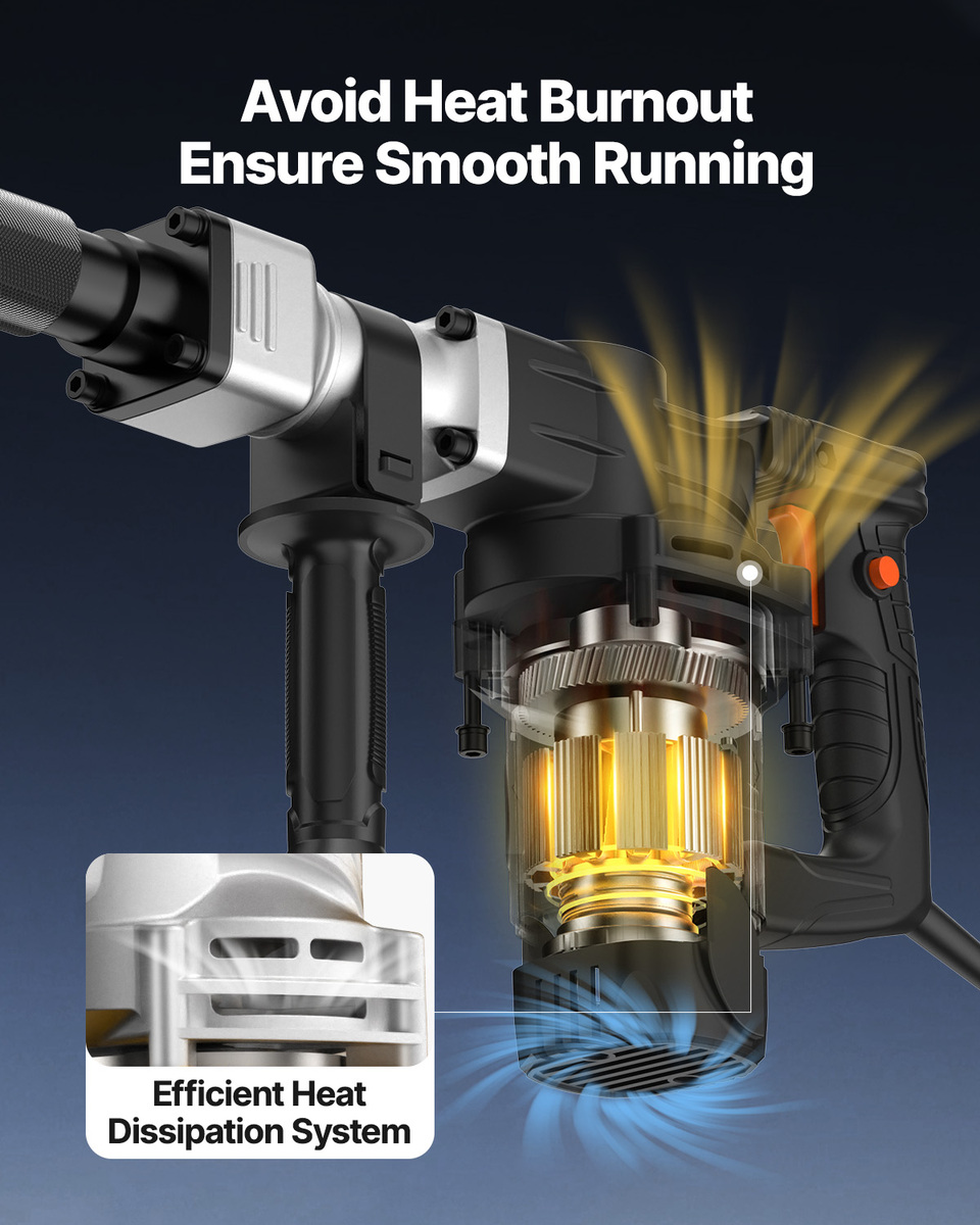 Stays Cool During Intense Work: The efficient cooling system effectively cools the motor to improve the concrete breaker's life span. The engine will be at low temperatures even after a hard day at work!