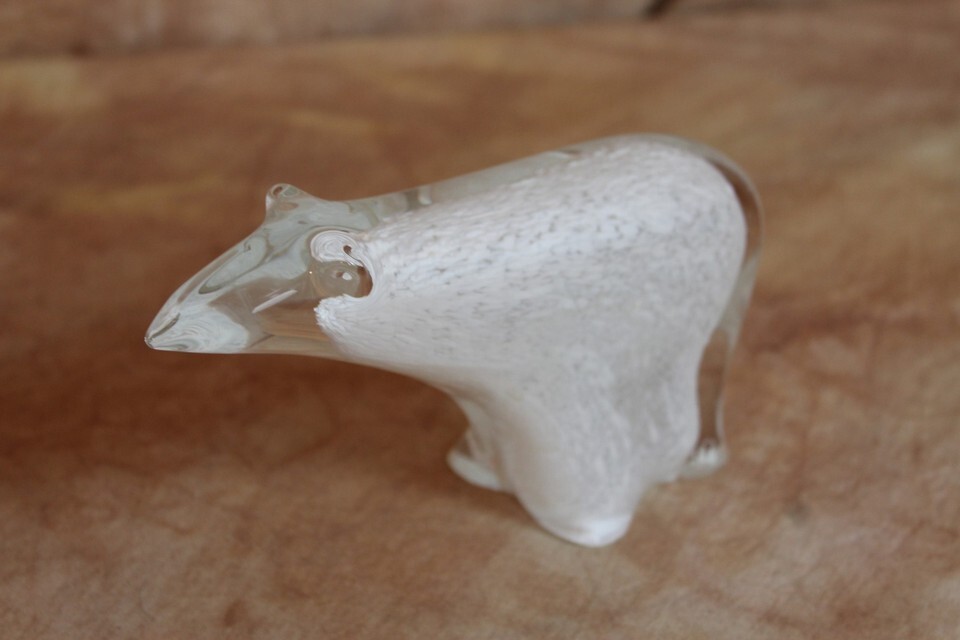 VTG Mid-Century Scandinavian Art Glass Polar Bear Figurine/Paperweight DH3119