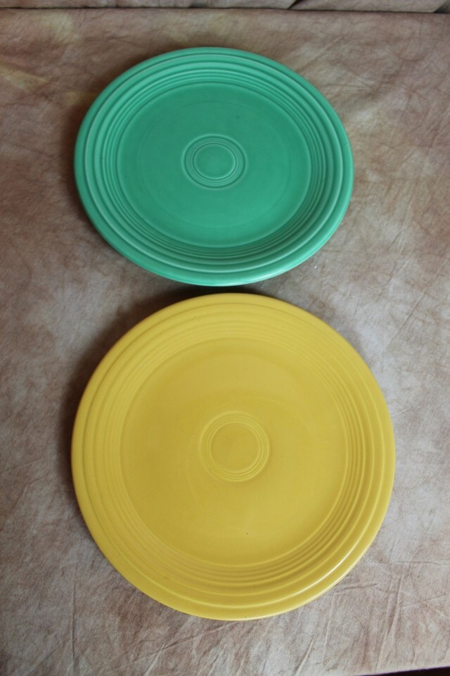 VTG FIESTAWARE 1940s SET OF 2 DINNER PLATES MARIGOLD GREEN