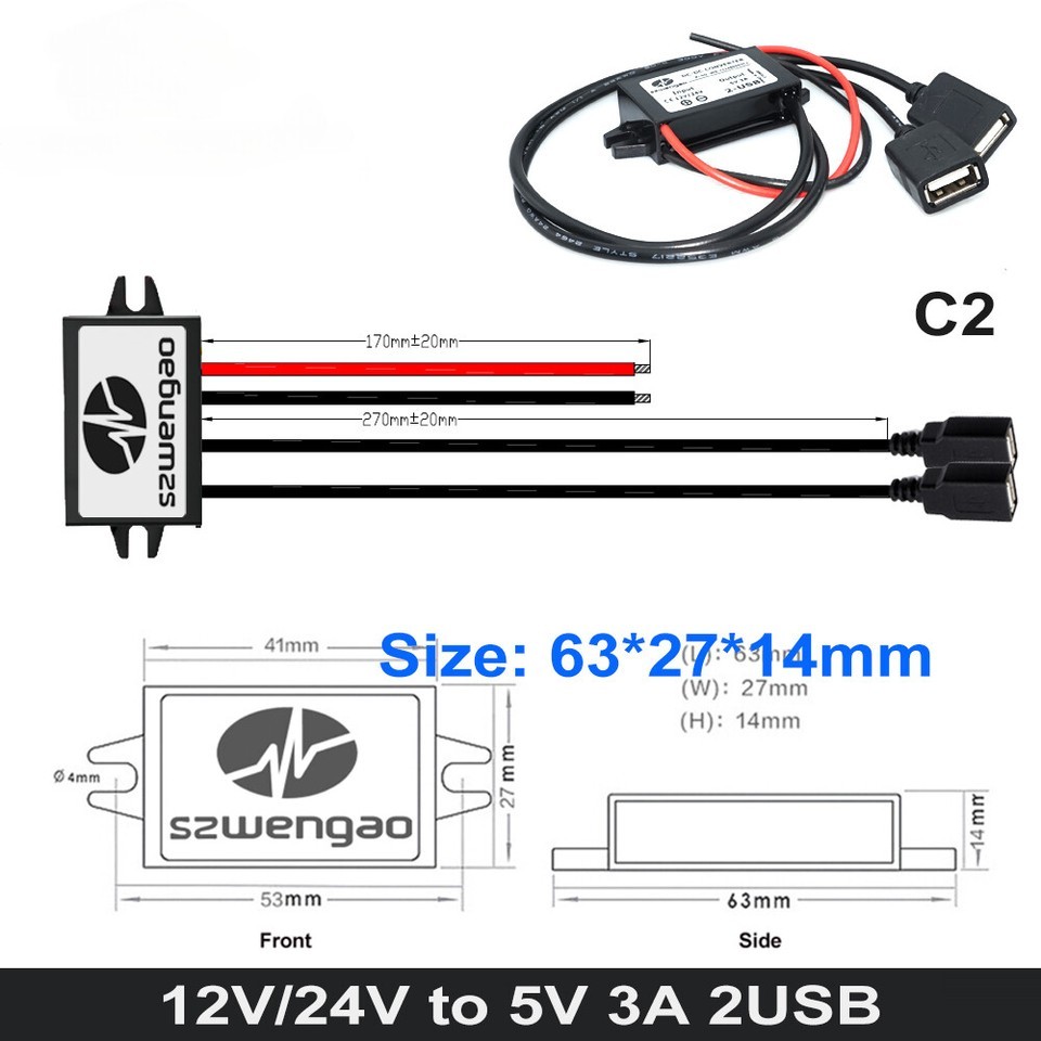 12V/24V to 5V 3A 15W DC Step Down Buck Converter Power Supply Module for Car