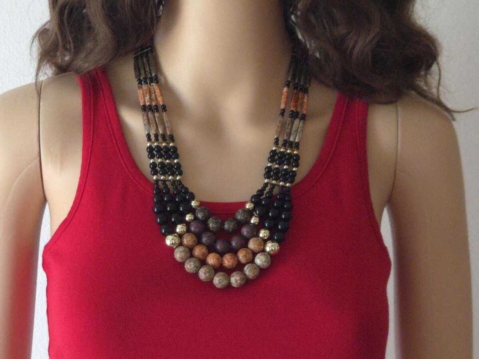 ?Style/Features: This striking large multi-strand necklace makes the ultimate statement piece. Crafted of alternating brown wood-look beads and sleek glossy black beads offering a rich texture depth. The multiple strands creat a voluminous, layered look that drapes beautifully. A perfect necklace accessory for the boho or hippie-chic style instantly elevating a simple tee or dress. The generous length and secure spring ring clasp ensure comfortable wear. Treat yourself to a bold, versatile piece of share as a gift.